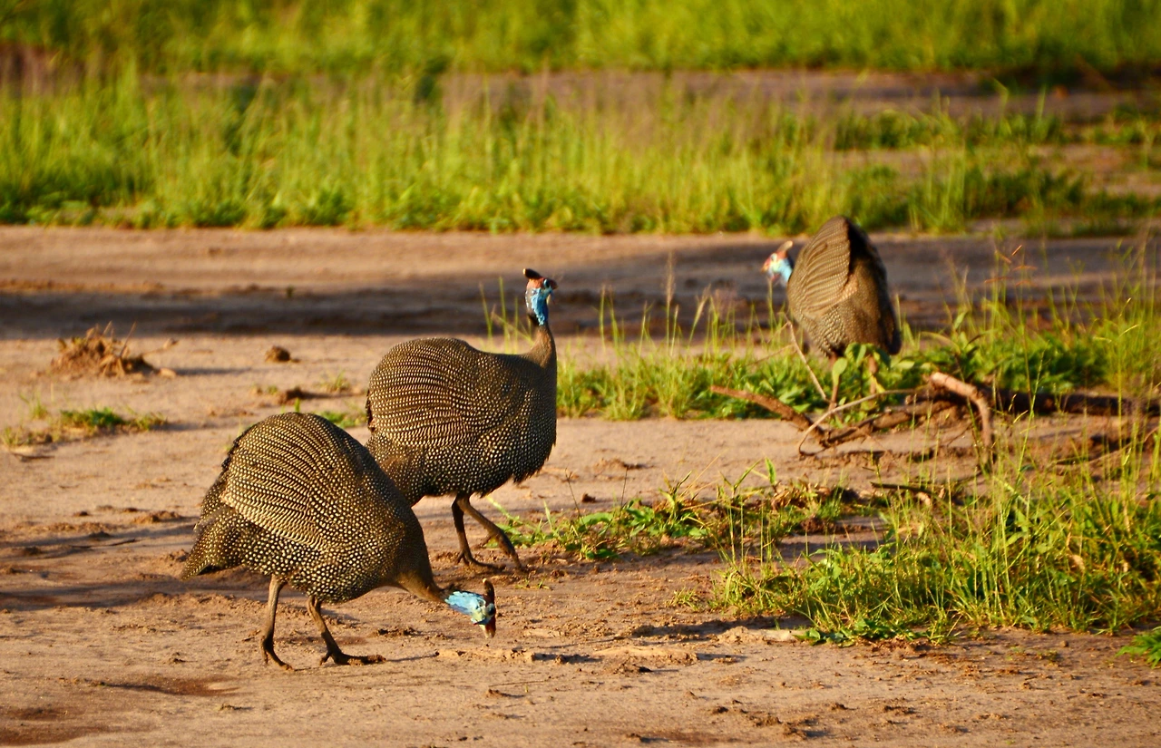 프린스는 처음에 우리가 들어왔던 그 길로 들어서고 있었다. 해가 뉘엿뉘엿 서쪽 하늘을 향해 달려가고 있었고 우리의 사파리 투어도 마지막을 향해 가고 있었다. 들판의 마지막쯤에 왔을 때 익숙한 새들이 보였다. 코미디언 김병만이 정글의 법칙에서 걸핏하면 먹잇감으로 잡으러 다녔던 바로 그 새였다. 이른바 아프리카 치킨으로도 불리는 호로새였다. 덩치는 우리의 닭보다 몸통이 큰 편이고 머리 부분에는 푸른색과 붉은색의 무늬가 있어 화려해 보였다. 바닥에 있는 벌레나 이런 것들을 잡아먹고 있는 풍경이었다. TV에서는 김병만과 쫓고 쫓기는 추격전을 하며 상당히 날랜 모습을 보여주었었는데 얘네들은 그다지 그렇게 빨라 보이진 않았다. 아니면 우리가 자신들을 공격하지 않을 거라는 확신이 있었나? 너무나도 여유롭게 자신들의 먹이활동에만 집중했고 우리는 신경 쓰지 않는 모습이었다.