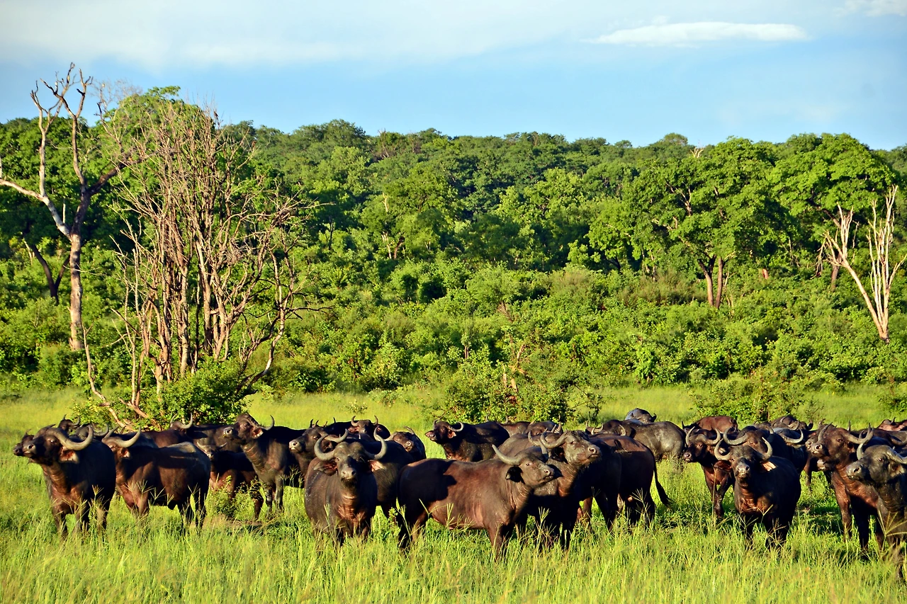 그 풍경을 지나 조금 더 가다 보니 물소들이 또 보이기 시작했다. 이번에는 몇 마리 수준이 아니라 그야말로 물소떼였다. 수십, 수백 마리의 물소들이 한 곳에 운집해 있다가 투어에 나선 우리 차량을 보고 살짝 당황했는지 우리와 반대쪽으로 움직이기 시작했다. 물소떼의 집단 움직임은 땅을 울렸다. 순식간에 일사불란하게 움직이는 듯하더니 금세 멈춰 섰다. 그리고는 우리 쪽을 응시하기 시작했다. 그중 덩치도 제일 크고 매서운 눈매와 단단한 뿔을 가진 한 녀석이 끊임없이 우리를 바라보고 있는 것이 느껴졌다. 아무래도 이 무리의 대장인 듯싶었다. 다른 녀석들은 뒤에 서서 간간히 우리를 살피고 있었는데 이 녀석만 우리를 끝까지 째려보았다.