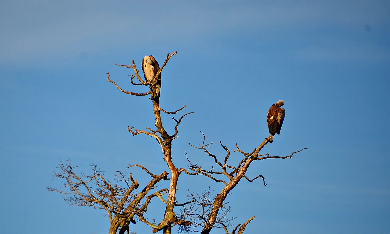 호로새를 지나 처음 왔던 그 나무 숲으로 들어왔다. 키 작은 나무들 사이로 이미 말라버린 키 큰 나무들이 몇몇 보였다. 한 나무의 맨 꼭대기 가지 끝에는 매가 앉아 있었다. 매 두 마리가 각자 가지 하나씩을 차지하고 앉아 자신의 깃털을 고르기도 하고 주변을 살피기도 하고 하며 그 자리를 지키고 있었다. 한 번쯤 날아오를 만도 한데 귀찮다는 듯 그렇게 그 자리에서 꼼짝 않고 사소한 움직임만을 보여주었다. 아마 이미 먹이 활동은 끝난 게 아닐까 싶었다.