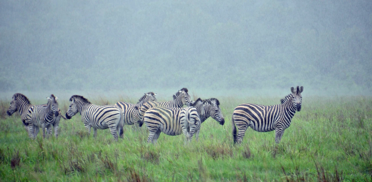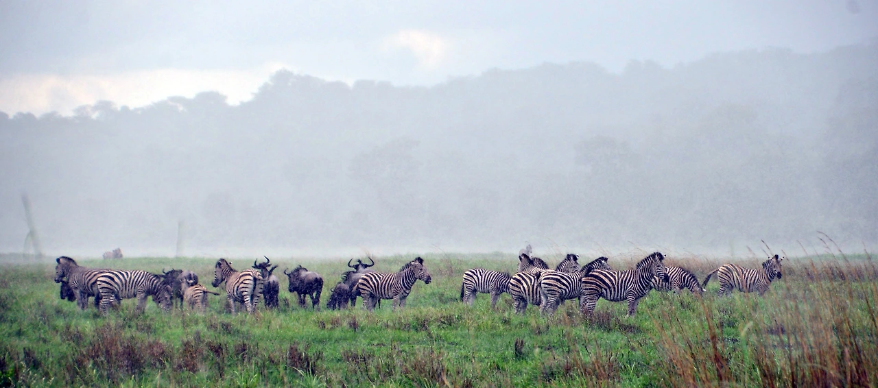 그렇게 비가 쏟아지는데 정작 프린스는 단 1의 동요도 없이 계속 운전을 했다.(프린스만 비옷을 입지 않았다. 없는 것도 아니었는데...) 그리고 얼마 뒤 얼룩말 무리를 만났다. 쏟아지는 빗줄기에 선명히 보이지는 않았지만 뿌연 상태에서도 얼룩무늬는 쉽게 확인할 수 있었다. 녀석들은 스콜이 익숙하기나 한 듯이 전혀 동요되지 않고 차분히 제 할 일들을 하고 있었다. 주변 경계도 하고 풀도 뜯고 하면서 이 정도의 비야 곧 지나가겠지 하는 태도로 여유로운 모습을 보였다. 동물원이 아닌 실제 아프리카 초원에서 얼룩말을 만난다는 것은 아프리카 여행이 가진 큰 매력 중의 하나일 것이다. 자연 그대로의 상태를 보여주는 그 모습을 인간은 그저 주변에서 스쳐 지나가며 눈으로만 감상할 뿐, 아무런 인위적 장치도, 방해도 없었다.