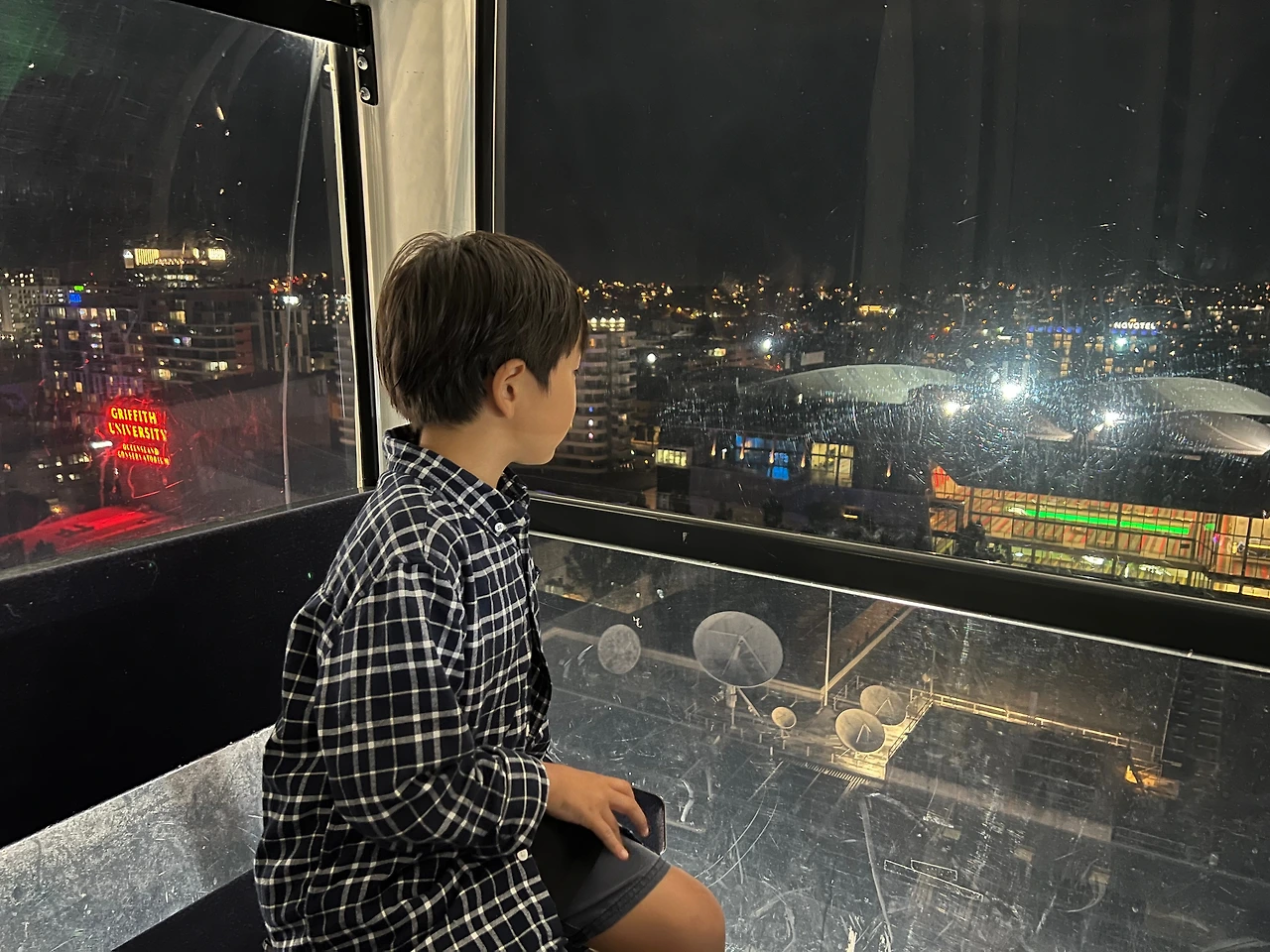 그러고 보니 브리즈번에 와서 꼭 타 보고 싶었던 브리즈번 대관람차를 타지 않았다는 게 떠올랐다. 마지막 날 밤의 코스로 딱인 것 같아, 물놀이하던 이은이를 다시 씻기고 입혀서 브리즈번 휠로 향했다. 대관람차를 별로 즐기지 않는 홍박사는 아래에서 기다리기로 하고, 나와 이은이만 관람차에 올랐다. 천천히 출발한 관람차의 고도가 점점 높아지자, 브리즈번의 반짝반짝한 야경이 두 눈 가득 펼쳐졌다. 저 아래로는 첫날처럼 여전히 브리즈번 강이 유유히 흐르고 있었고, 강변을 따라 불빛을 밝힌 크고 작은 빌딩들이 줄 지어 서 있었다. 브리즈번에 와서 이은이와 둘만 보내는 시간은 또 처음인 것 같아서, 근사한 야경을 배경으로 열심히 함께 셀카를 찍었다. 그리고 아무래도 마지막 밤이라 그런지 감수성이 충만 해져서 아이의 손을 맞잡고 이번 여행에서 느꼈던 고마운 마음을 전했다. 마냥 아이인 줄 알았는데 의젓하게 엄마아빠의 말을 따라 주고, 어떤 순간에도 항상 웃어줘서 정말 고마웠다고. 앞으로 더 많은 여행을 함께 하자는 약속도 덧붙였다. 부디 이은이에게 이 밤이 오래 기억되길, 그리고 지치고 외로울 언젠가의 밤에 오늘 밤의 기억이 이은이에게 조금은 힘이 되길 바라며 대관람차에서 하차했다.