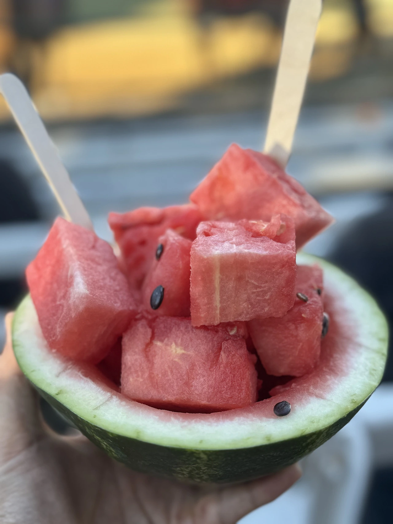 좀 더 안쪽으로 들어가자 이번에는 놀이기구들이 등장하기 시작했고 동시에 홍이은의 콧구멍도 확장되기 시작했다. 놀이기구를 탄 아이들의 얼굴, 그 얼굴을 바라보는 이은이의 얼굴을 보니 도저히 뭐라도 태워주지 않을 수가 없었다. 허나 모든 놀이 기구마다 대기줄이 어마어마한 관계로 딱 하나만 타보기로 하고 약속하고 이은이에게 타고 싶은 것을 직접 고르게 했다. 고심 끝에 이은이가 고른 것은, 널찍하고 얕은 야외 풀장 위에 바람을 채운 커다란 투명공들이 둥둥 떠 있고 그 속에 들어가 노는 시간제 놀이기구였다. 호주 아이들 사이에 쭈뼛쭈뼛 줄을 서서 15분 정도 기다렸을까. 이은이의 차례가 되었다. 아이의 공처럼 부푼 설렘이 나에게 까지 전해졌다. 처음에는 조심스럽게 들어갔지만 이내 물 위에 뜬 공 속에서 뛰고 구르고 눕고 달리기 시작했다. 공이 터지거나 찢어지지 않는 것이 신기할 정도로 국적불문 저 나이또래 남자아이들의 폭발적인 에너지가 놀라우면서도, 저 별거 아닌 놀이기구에 너무나도 행복해하는 아이들의 천진난만함이 한없이 사랑스러웠다. 땀을 뻘뻘 흘리며 공에서 나오는 이은이의 표정은 순도 100%의 즐거움으로 충만했다. 한껏 신난 아이를 데리고 수많은 사람들 사이를 뙤약볕 아래에서 걸으려니 허기와 갈증이 소나기처럼 쏟아졌다. 즉석에서 오렌지를 잘라 즙을 내주는 오렌지 주스, 또 즉석에서 반을 갈라 먹기 좋게 슥슥 썰어주는 수박, 한국인이 운영하는 푸드트럭의 한국식 콘도그까지 앉은자리에서 해치우곤 우리는 뒤도 돌아보지 않고 그곳을 떠났다. 짧고 굵고 찐하게 보낸 마지막 날의 오후가 저물고 있었다.
