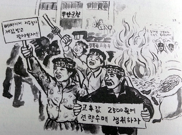 농촌 분위기가 심상치 않자 정부가 2,000원에 수매를 약속했지만 지켜지지 않았다. 한여름 뙤약볕을 온전히 받아내며 따고 말려 좋은 것만 가려낸 고추를 내다 버리게 되었으니 여기저기서 복장 터지는 소리가 하늘을 찔렀다.