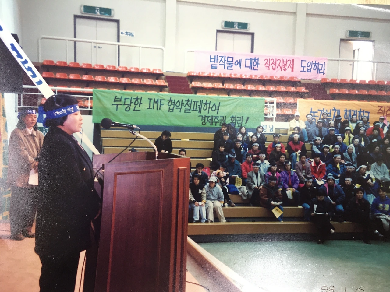 화가 날 만하다. 여성농민 대표로 정책토론을 하는데 개인 빚 탕감이나 하자고 토론한다는 발상 자체가 괘씸하다. 중국산 수입마늘 문제로 농림부에 들어간 적이 있는데, 고송자 회장이 한 소리 하니 계장이 “아주머니, 마늘 얼마나 있어요. 내가 다 사줄게” 하더란다. 여성농민 대표를 대하는 정부 관료들의 현주소였다.