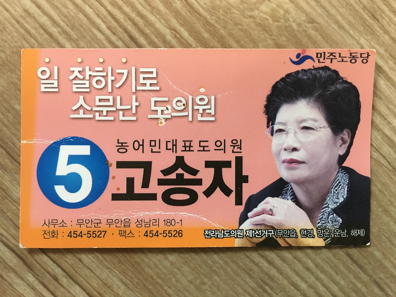 2010년 지역구 선거에 나선 고의원은 지역을 훑었다. 농민과 어려운 사람을 위해 일할 사람은 고 의원뿐이라고 엄지 척하는 주민들은 많았지만 민주당의 벽을 넘기는 힘들었다. 198표 차의 석패였다. “아깝게 졌지만, 정치인 고송자를 지지했던 군민들에게 보답하는 일은 농민운동 열심히 하고 사는 것이라고 생각해”