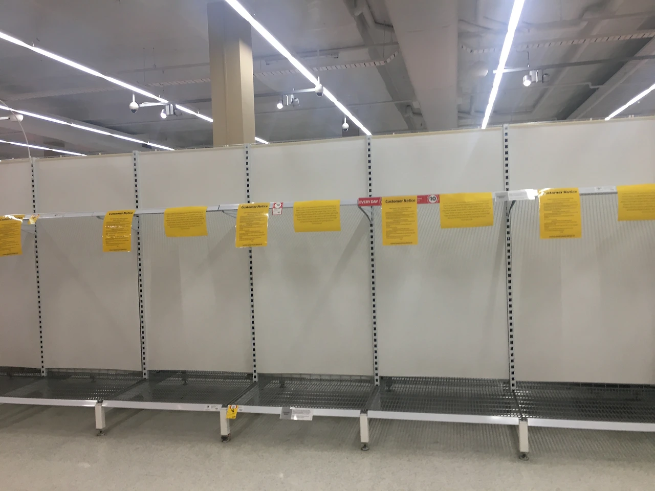 언제 출산할지 모르는 날이 하루이틀 지났고 불안해진 sister 남편이 일주일 휴가를 냈고 우리는 서로 안심했다. 매일저녁 임산부와 동네 산책하기와 집앞 슈퍼 coles 가는 것이 유일한 외출이었다. 호주 마트 양대산맥이라 불리는 coles에 이상하게 텅비어있는 매대가 있었다. 다른 식료품들은 그대로 인데말이다.