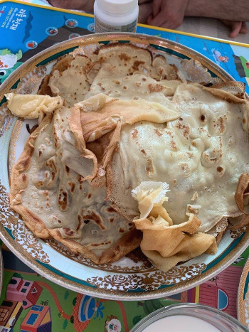 코이목은 고기를 넣어 브리또처럼 만들기도 하지만 이렇게 얇게 만들어 생크림이나 잼, 꿀에 찍어 먹는 음식이다. 남편의 첫 도전이어서 모양이 형편없지만 정성이 담겨 있어서 그런지 맛있게 먹었다.