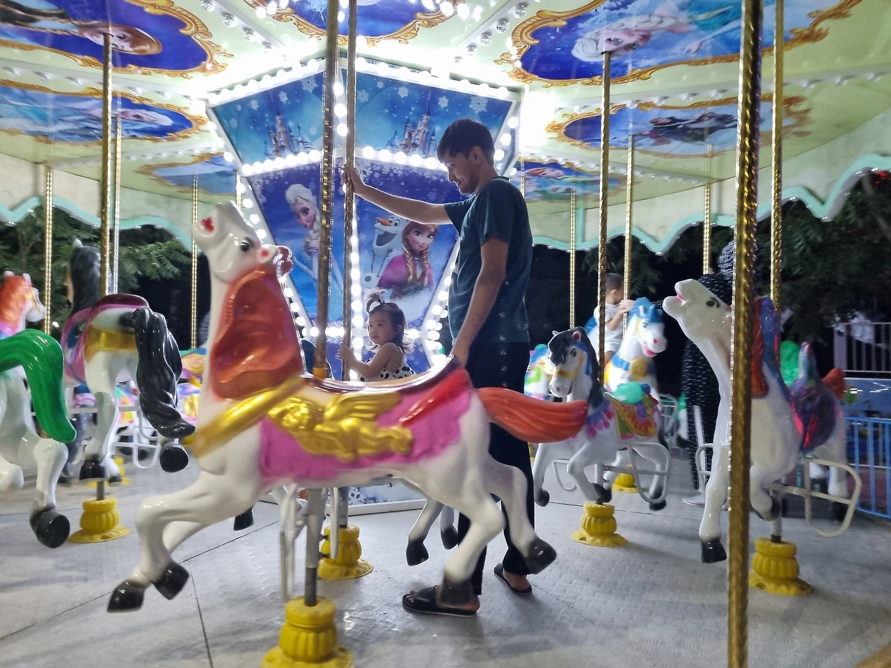 음식을 맛있게 먹고 소화도 시킬 겸 안쪽으로 걸어 들어가 보니 놀이기구들이 있었고 아이들이 무척이나 재밌어했는데 이곳의 입장료는 따로 없으며 하나 탈 때마다 한국돈 500원이었다. 열 살이 넘는 조카는 탈 생각도 하지 않고 동생들만 돌보았는데 얼마나 예절교육을 잘 받았는지 항상 조카들을 보면 너무 이쁘다는 생각이 들었다. 오늘도 분명 타고 싶었을 텐데 말 한마디 안 하는 조카들을 보고 시누이 어머님까지 모두 태워주고 싶었던 나는 아이들만 태워주는 눈치 없는 샤로프든을 뒤로하고 내가 타보고 싶다며 가족을 바이킹에 태웠고 모두들 얼마나 좋아하던지 순수한 어린아이들 같았다.