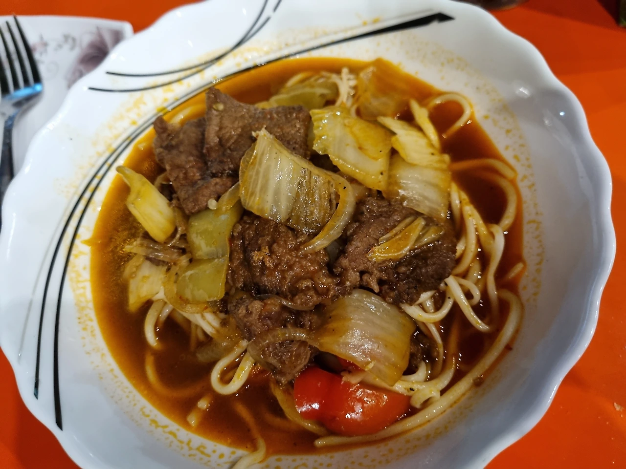 국물이 있는 라그만으로 이건 남편이 좋아하는 음식이기도 하다. 맵지 않은 라면 요리?!