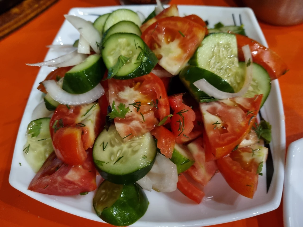 여러 종류의 샐러드가 있지만 샤슬릭 고기를 먹을 때 주로 함께 먹는 샐러드이다.