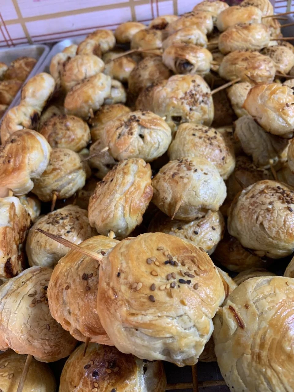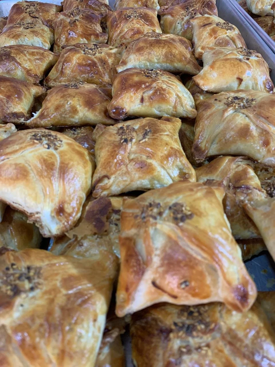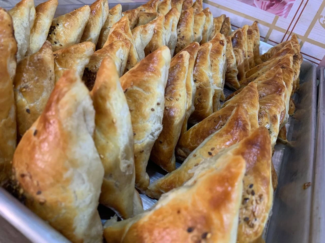 우즈베크 쌈사(만두)로 만두소에는 양고기와 다진 양파가 들어가고 빵은 얇은 패스츄리를 여러 겹 한 듯 매우 바삭하다