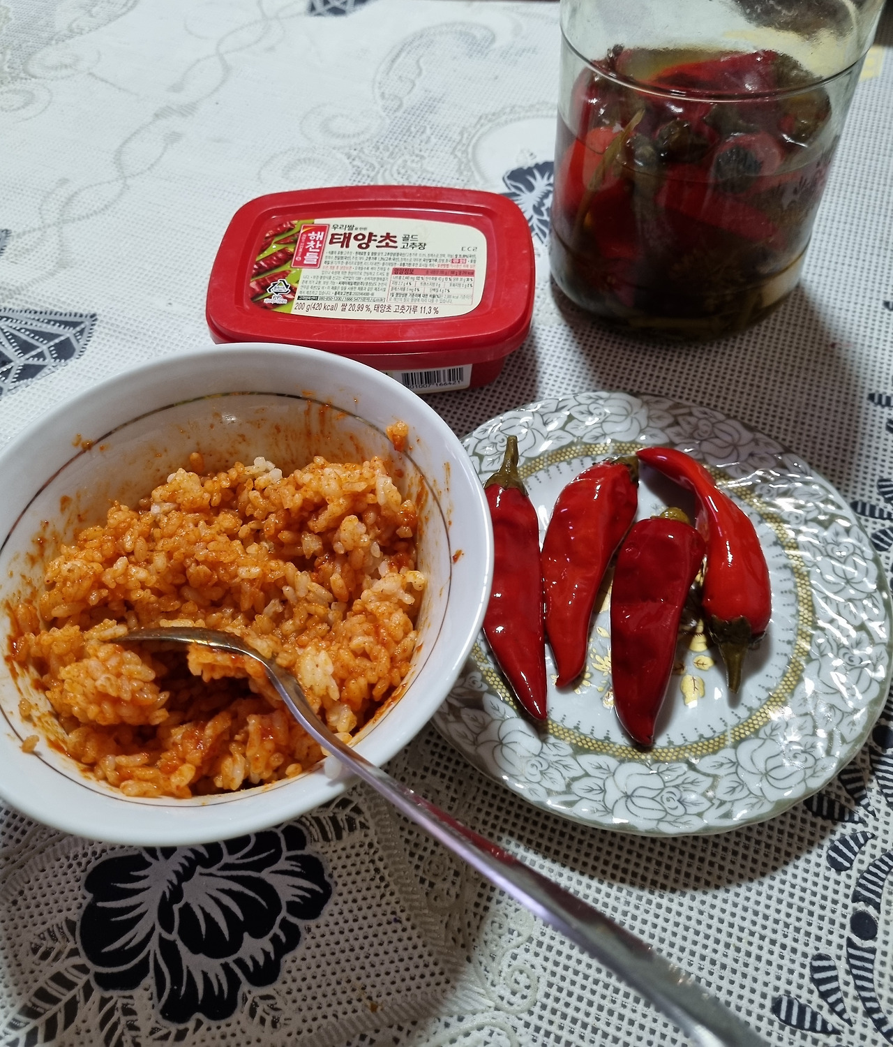 우즈베크 음식을 맛있게 먹다가도 한국인 모드가 발동할 때면 한국에서 챙겨 온 고추장을 밥에 비벼 고추와 함께 먹는 것으로 몸에게 매운맛을 선물해주고 있다.