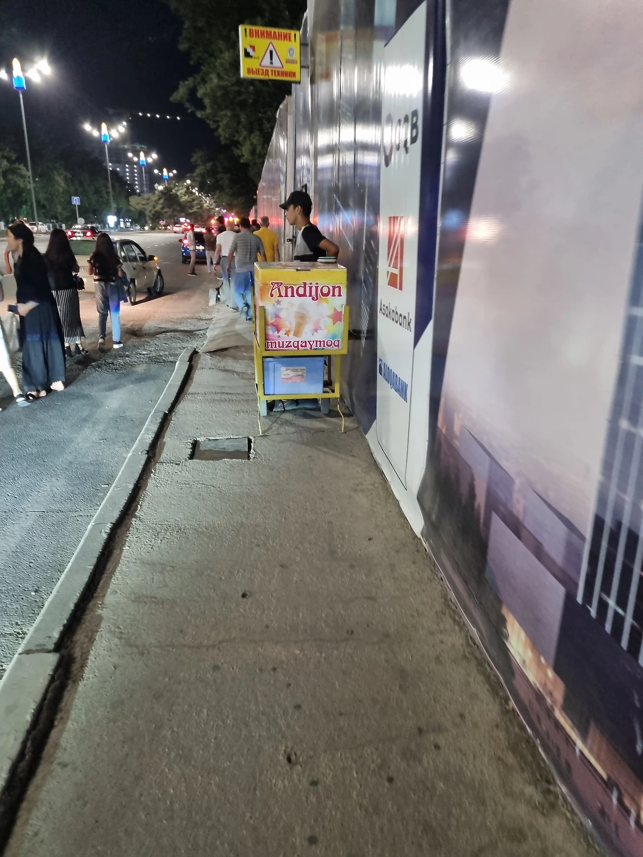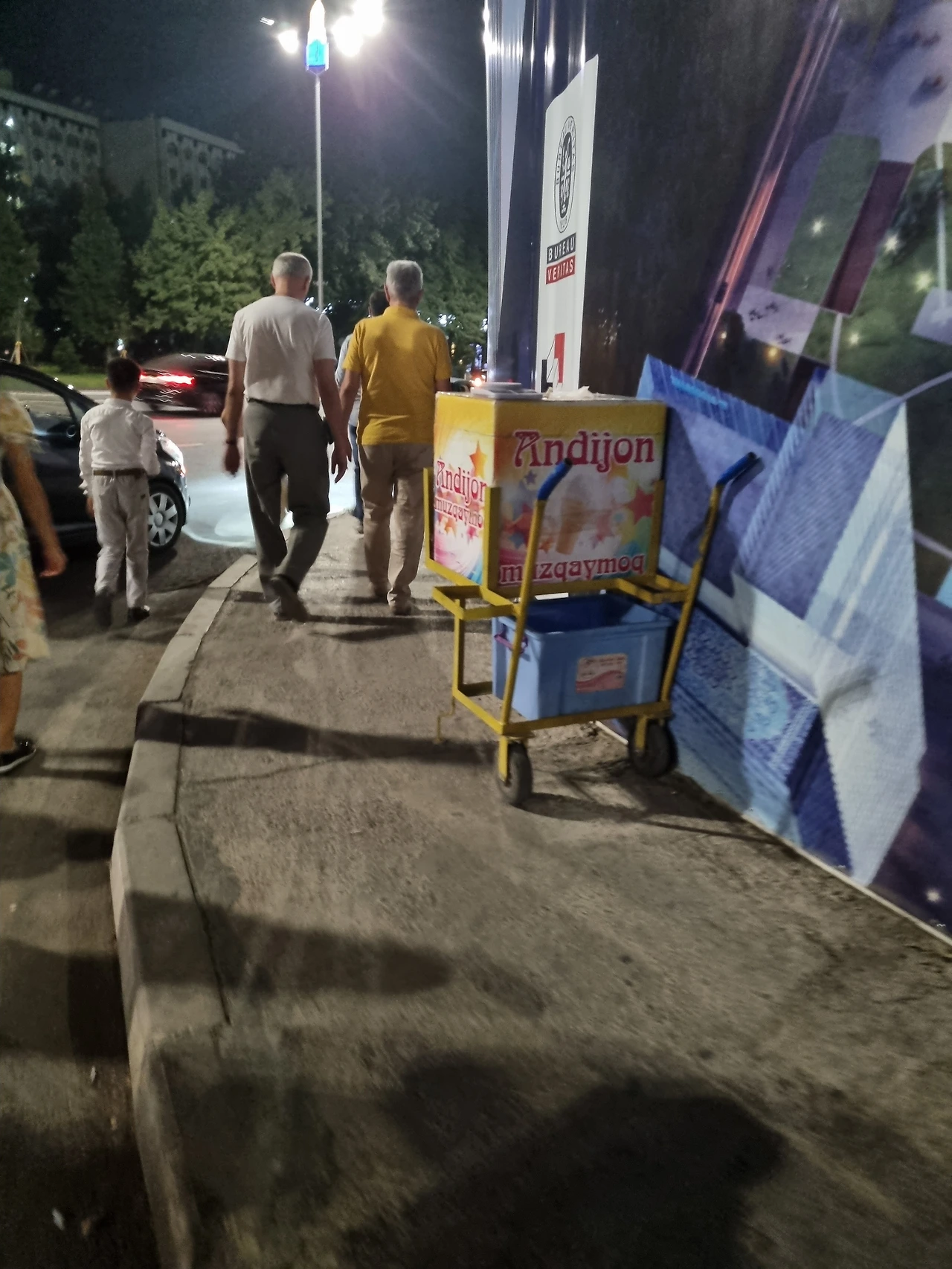 타슈켄트에서 남편과 데이트 중 타슈켄트 시티 안에서 밥을 먹고 나와 소프트 아이스크림을 먹으며 걸어 나오는데 입구 밖에 줄지어 서있는 안디잔 아이스크림 카트들을 발견하고 좌절을 한 나는 이날 이후로 관광지나 사람 많은 곳을 갈 때는 안디잔이 있을 것이라는 생각을 하고 아이스크림을 더 자제하고 기다려보기로 다짐도 하였다.