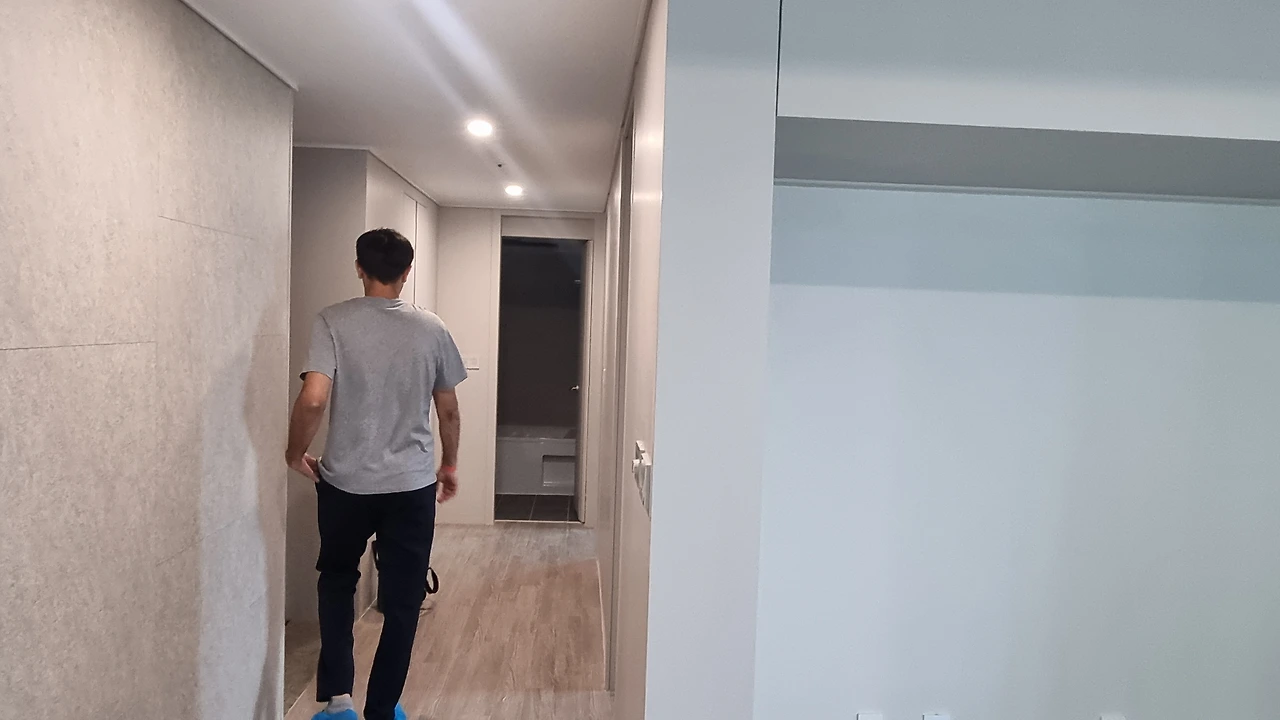 사전점검 방식은 집을 둘러보면서 하자가 있는 부분은 사진을 찍어 전송하면 바로 수리가 가능한 부분은 직원분들이 와서 고쳐주었는데 여기저기 큰 눈으로 잘도 찾는 우즈베키스탄 남편,