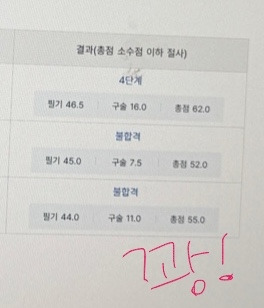 문제의 원인을 살펴보니 필기시험에서 평소 모의고사 보다 훨씬 점수가 낮게 나왔는데