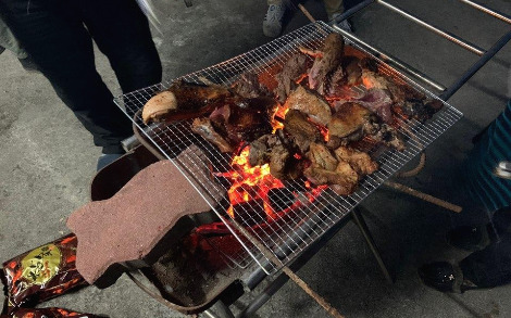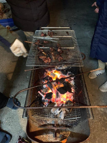 (추운 겨울에 밖에서 먹은 고기는 맛이 없을 수가 없지)