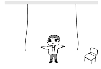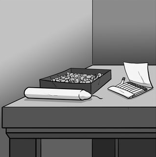 문제는 이 두 밧줄을 끝을 묶어서 서로 연결하는 것이다. 그런데 하나의 밧줄을 잡고 다른 밧줄로 가까이 가면 줄이 짧아서 닿지 않는다. 주위를 둘러봐도 방안에는 나무 의자 하나가 있을 뿐이다.