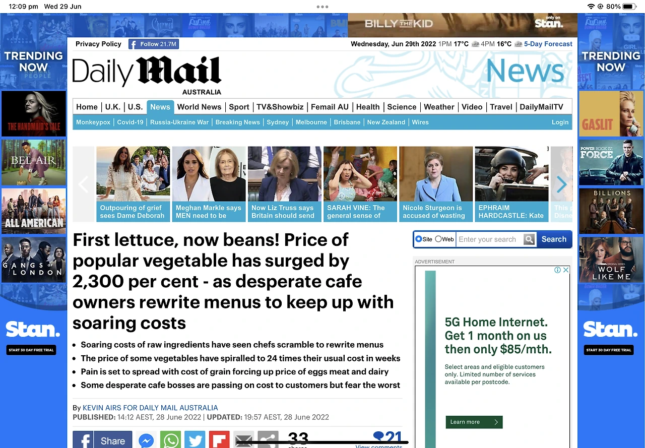 인플레이션 영향도 있지만, 호주에 홍수가 많이 나서 야채, 과일 값이 많이 올랐다.