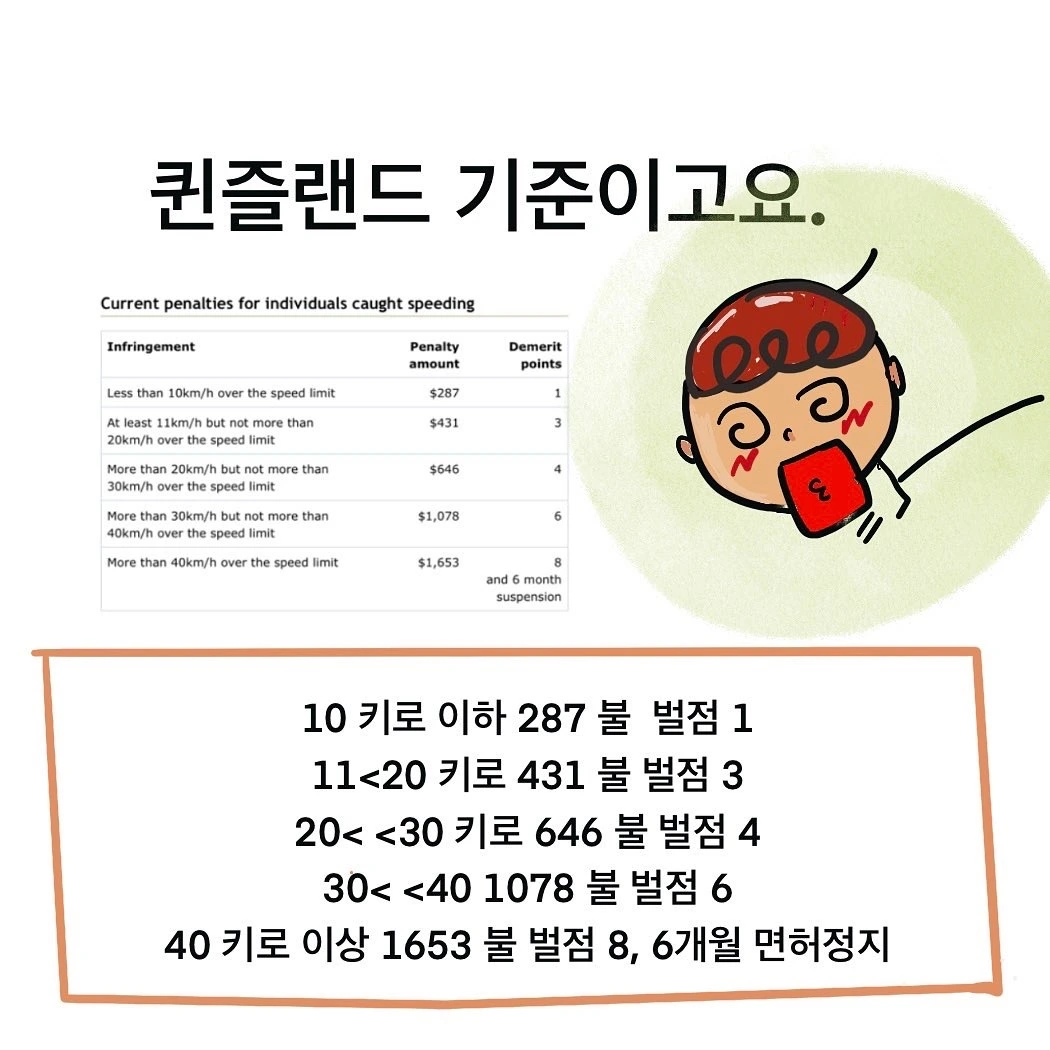 이 내용은 2022년 퀸즐랜드 주 기준이고, 각 주마다, 벌금이나 벌점이 다를 수 있다.