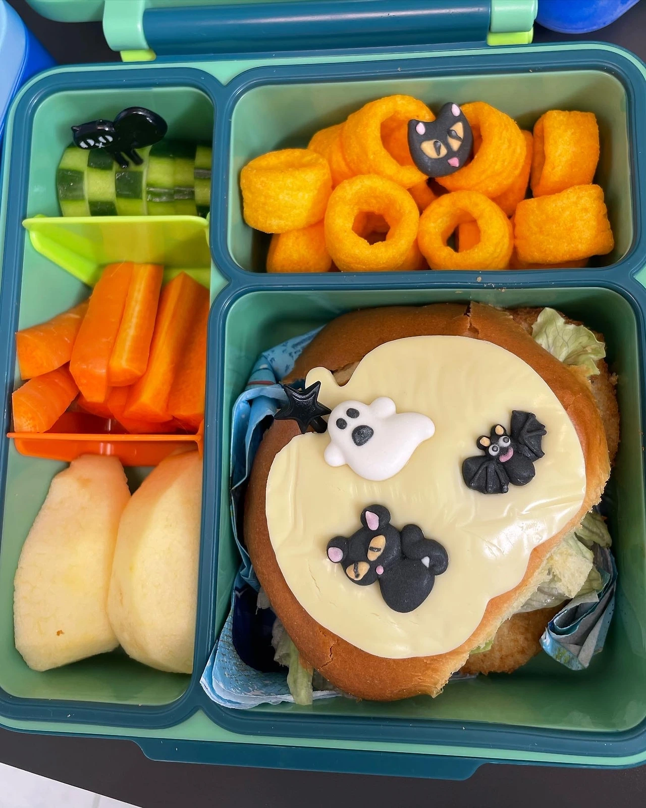핼러윈이니깐 핼러윈 사탕도 좀 사서 붙여 보고, 아빠가 잔뜩 사서 처치 곤란한 귤도 매일 꼬박꼬박 넣어 주면,
