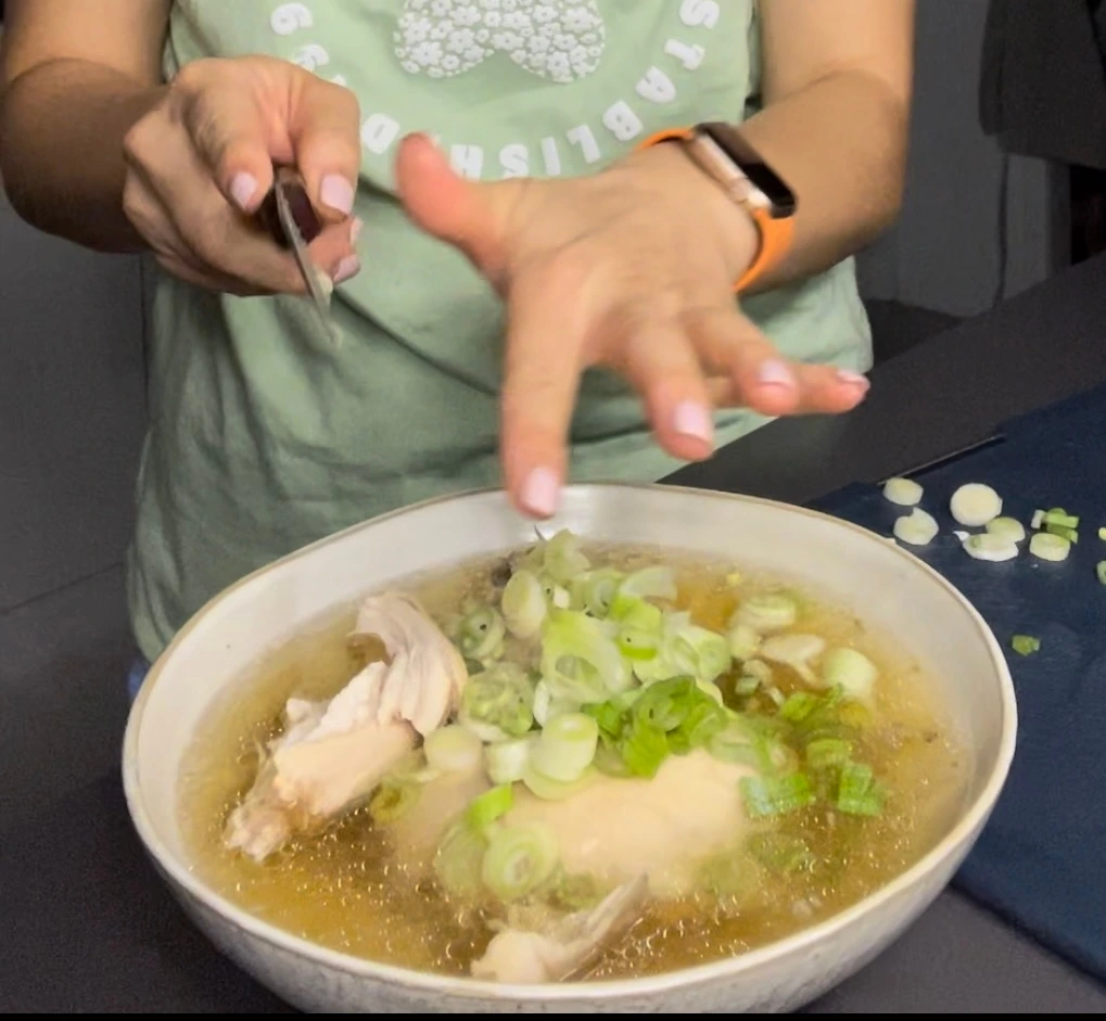 일하러 가기 전에, 닭백숙을 끓여 놓고 잃을 하러 갔다.