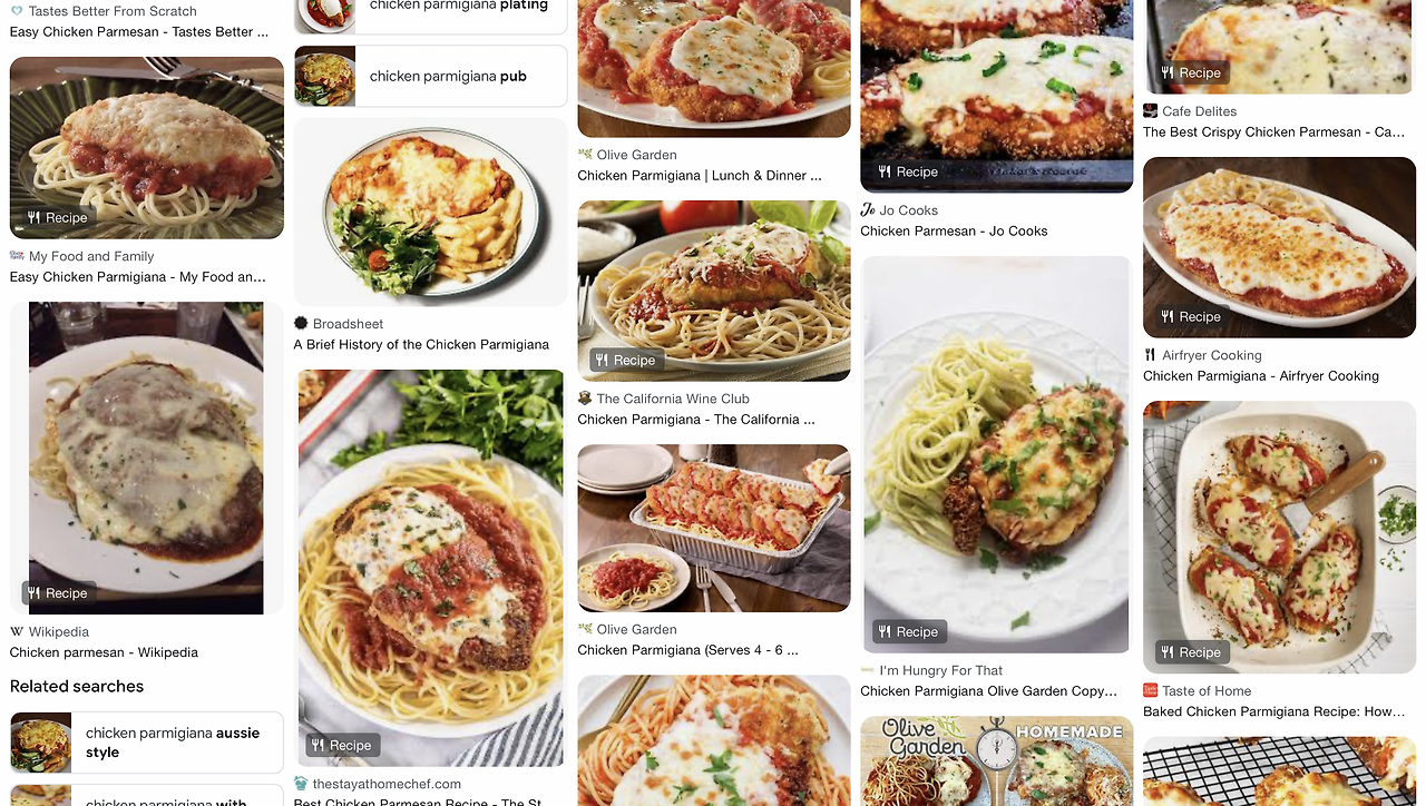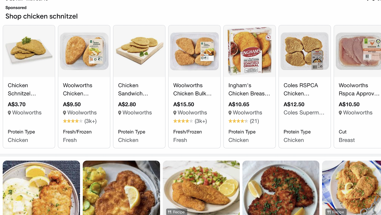 아래 사진들은 실제로, 치킨 스니츨을 구글에 치면 나오는 쇼핑 메뉴들인데,