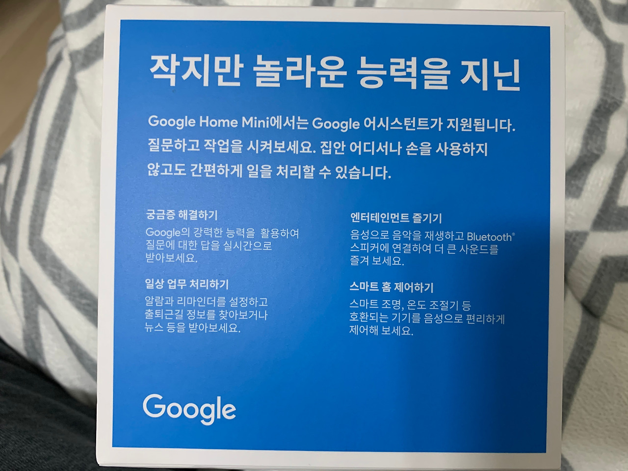 P.S. 현재 구글 홈 미니는 최저가 3만 원에 판매되고 있다. 하나 더 사서 파티 모드를 하던지 크롬캐스트와 함께 연결해서 사용을 해볼까 고민 중이다.