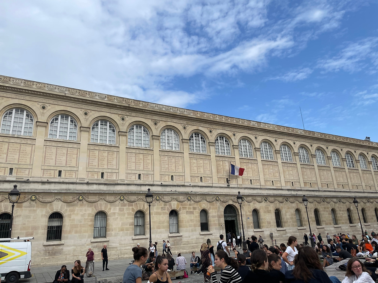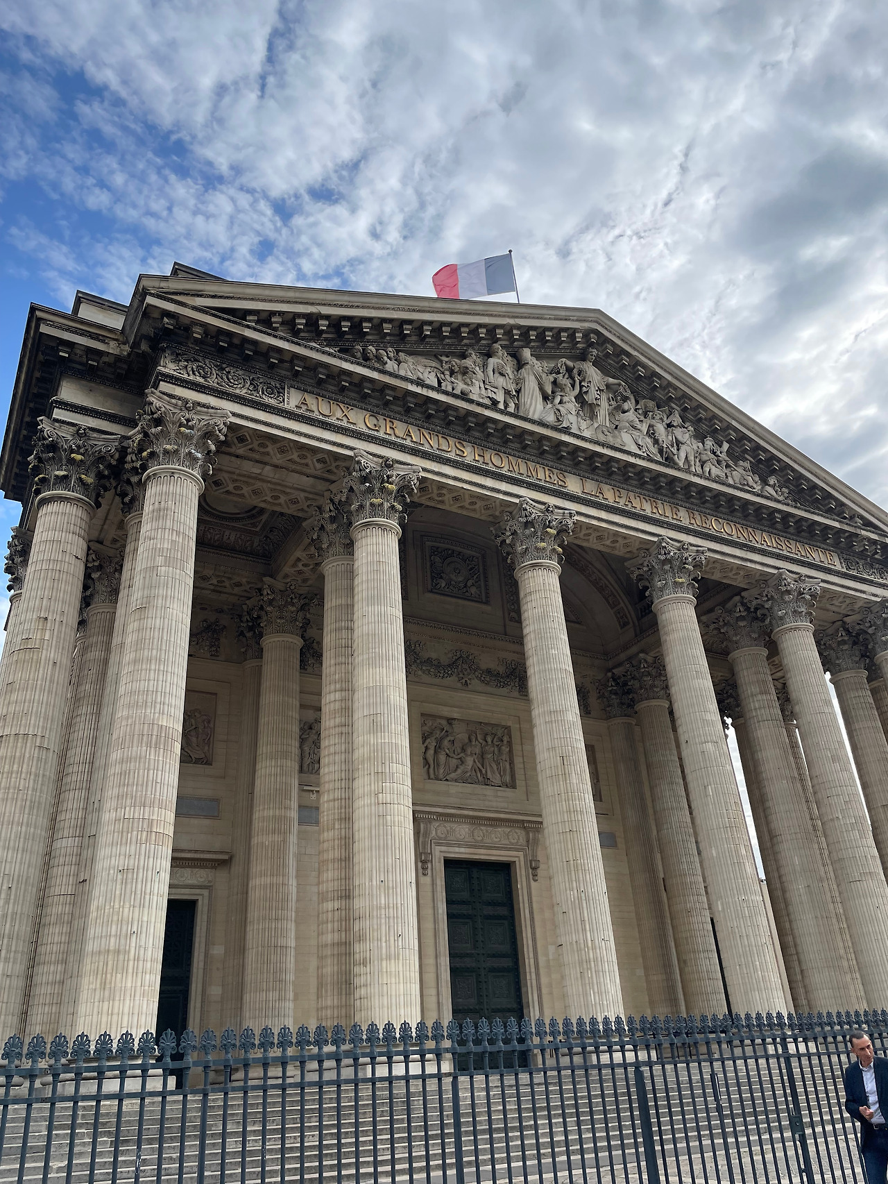 학생들과 관광객들이 그 앞의 팡테온 광장에 아무 데나 걸터앉아 점심을 먹고 있었어서 외관만 보고 프랑스어를 읽지 못하면 그냥 학교의 박물관? 총장실처럼 볼 수도 있을 것 같았다. 그러나 팡테옹 위쪽의 'AUX GRANDS HOMMES LA PATRIE RECONNAISSANTE'라는 문구를 번역해 보니 '조국이 위대한 사람들에게 사의를 표한다.'라는 웅장한 문구가 나타났다. 우리나라에서 저런 웅장한 문구가 적힌 곳 앞에서 아무 데나 걸터앉아 샌드위치를 먹고 있는 장면은 잘 상상이 안되었다. 그 앞에서 가만히 앉아 있으니 건축물의 모습, 주변 건물들과의 조화, 광장 사람들의 분위기에서 엄숙함과 친밀함, 우리나라에서는 모순적일 것만 같았던 두 가지 생각이 교차했다. 엄숙한 곳이 친밀할 수 있을까? 친밀한 곳에서 엄숙함을 느낄 수 있을까?