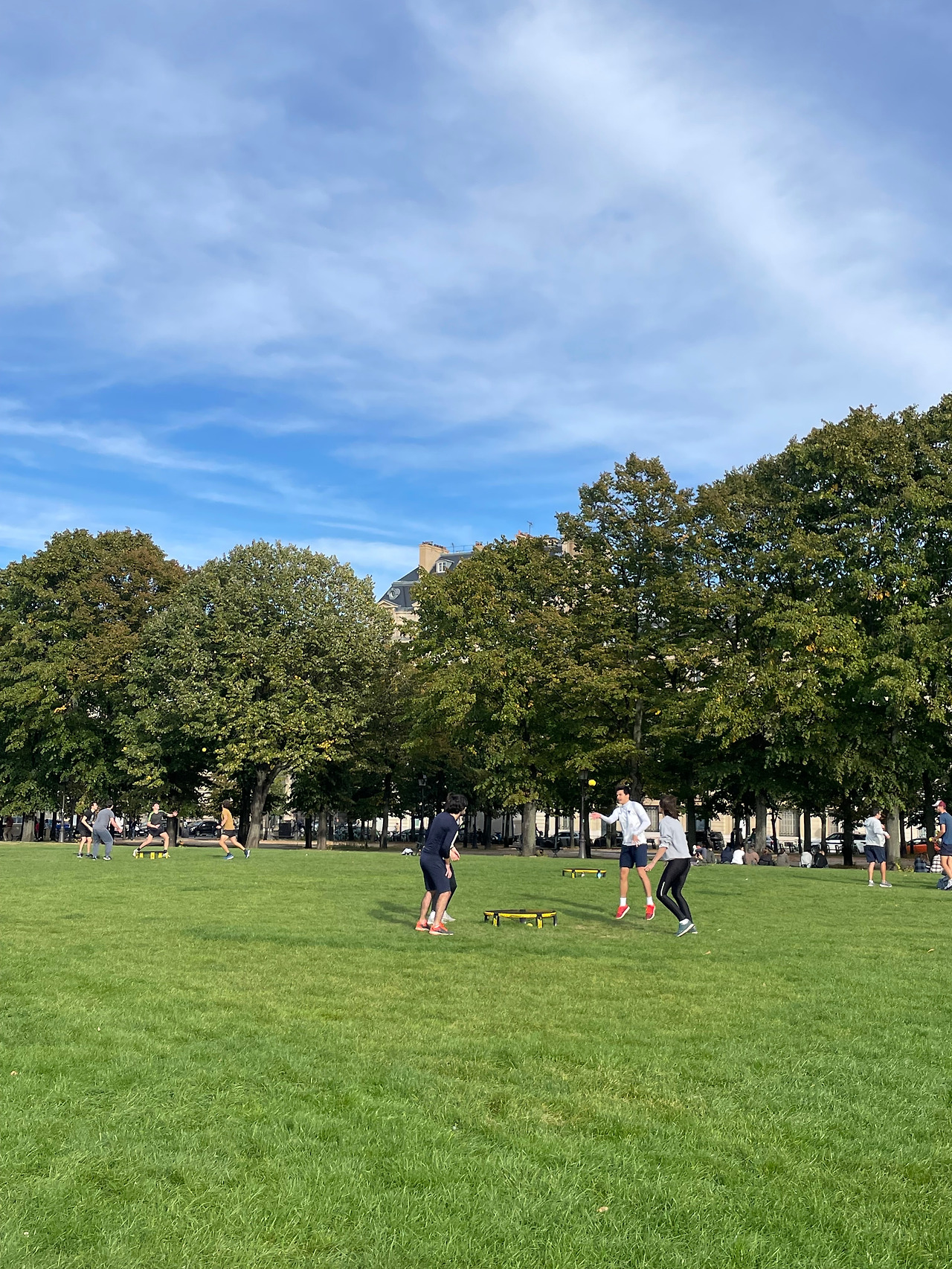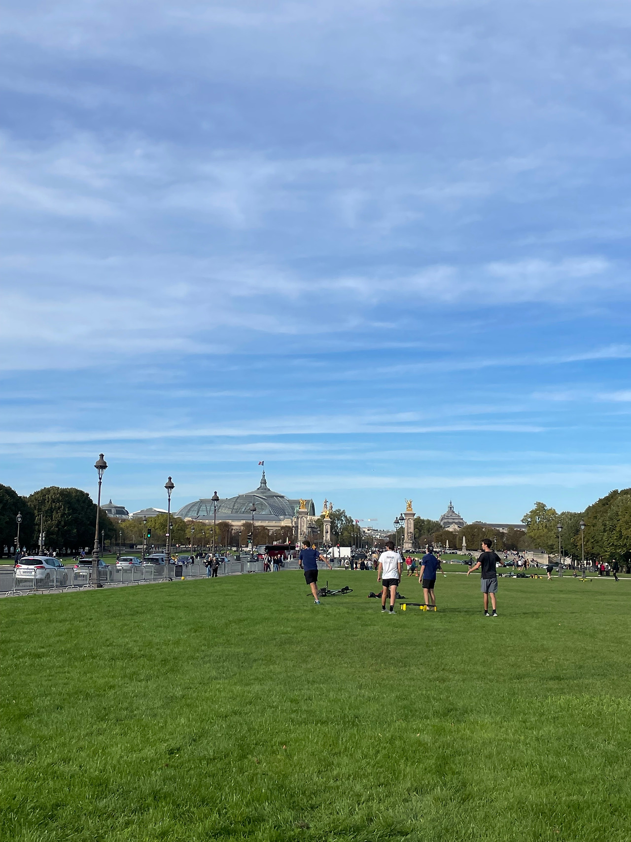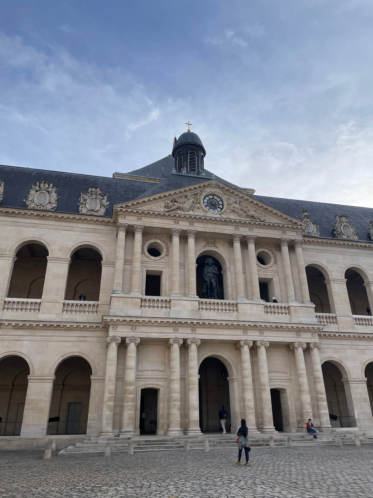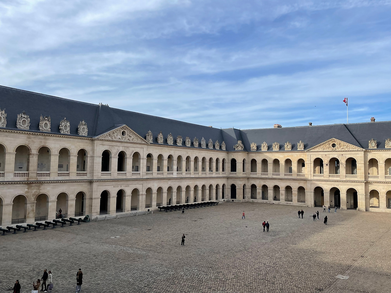 위 사진들은 흡사 그냥 공원의 한 부분으로 보인다. 그러나 그 뒤를 돌아보면 아래와 같은 프랑스의 나폴레옹을 포함한 유명 장교들의 묘지가 있는 군사박물관 단지, 앵발리드(Hôtel des Invalides)가 있다. 세계에서 가장 아름다운 다리로 꼽히는 알렉산드르 2세의 다리 앞이자 파리의 상징인 에펠탑 옆, 그리고 시민들이 놀 수 있는 넓은 잔디밭과 뒤에 죽은 군인들의 묘지가 있는 것이다. 이런 배치는 나 같은 프랑스 역사에 무지하다면 한없이 무지한 해외 관광객도 지나가다가 호기심에 한 번씩 들르게 된다. 또한 근처로 놀러 온 파리 시민들은 굳이 저 장소에 엄숙하게 들어가지 않더라도 항상 저 장소를 인지하며, 나라를 위해 싸운 군인들을 생각해 볼 수 있는 기회를 가지게 된다.