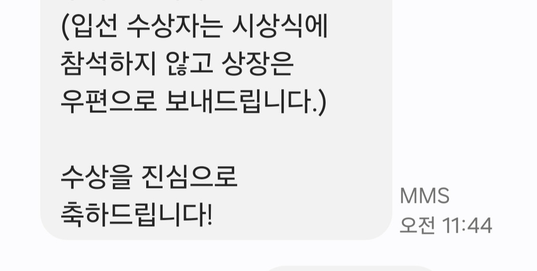 그러다 문득 발표 날짜가 이쯤인 것 같은데...라는 생각하고 있던 찰나에 문자를 받은 거야.