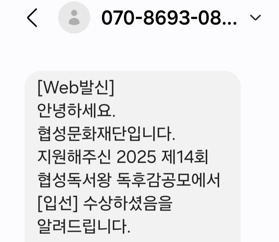 그런데 그 독후감이 덜컥 '입선'에 선정이 되었다는 문자를 받고 얼마나 놀랐는지 몰라.