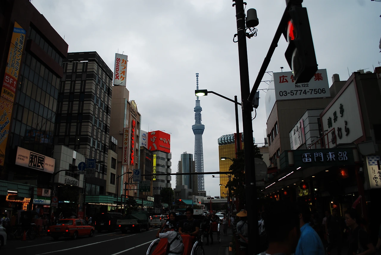 세계에서 가장 높다는 타워, 634m 스카이트리 타워. 아사쿠사에서 이곳, 저곳 돌아다니다 보면 건물사이로 스카이트리를 간간이 볼 수 있다. 도쿄의 풍경은 항상 도쿄타워만 생각해왔지만, 스카이트리의 로봇스러운 은빛색을 보니 더욱 일본스러운 느낌에 어울리는 것 같다.