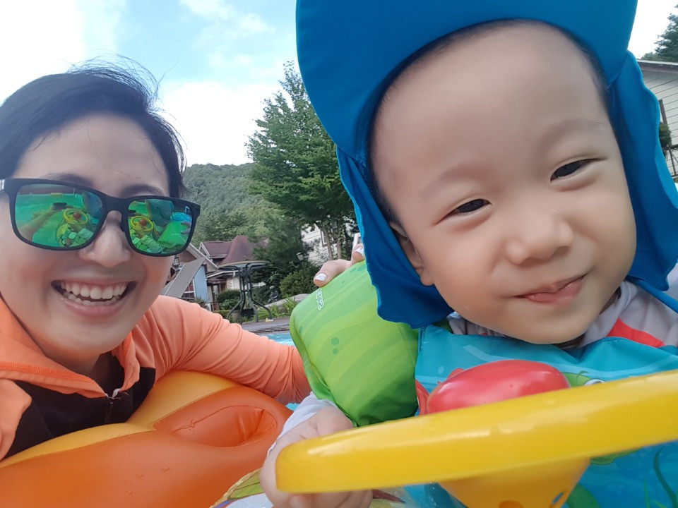 공용 대형 튜브들이 있어서 번갈아가면서 타고 놀았는데, 아직도 그때 이야기를 하면, 준영이는 '커다란 붉은 홍학을 아빠랑 같이 탔고, 검은 돌고래를 아빠랑 같이 탔어~' 라고 생생하게 기억을 한다.