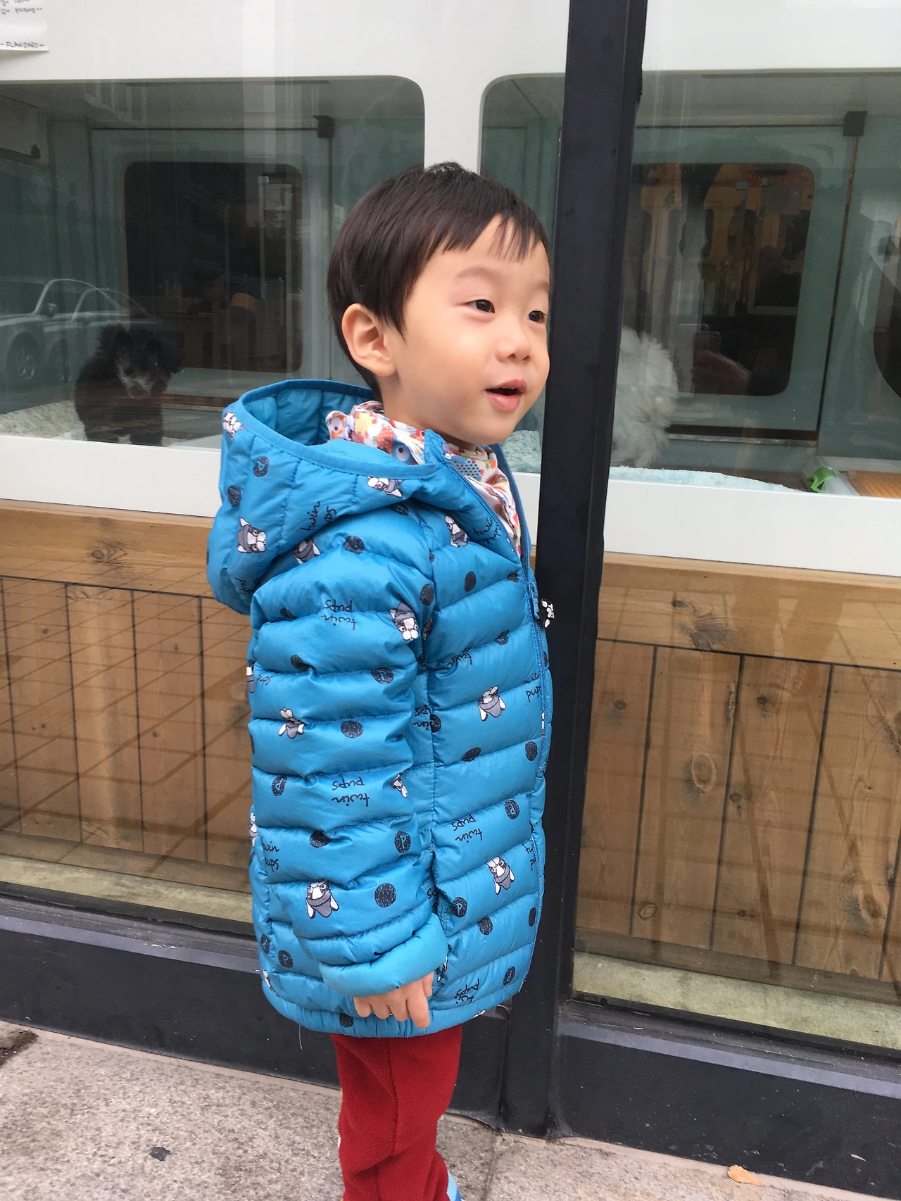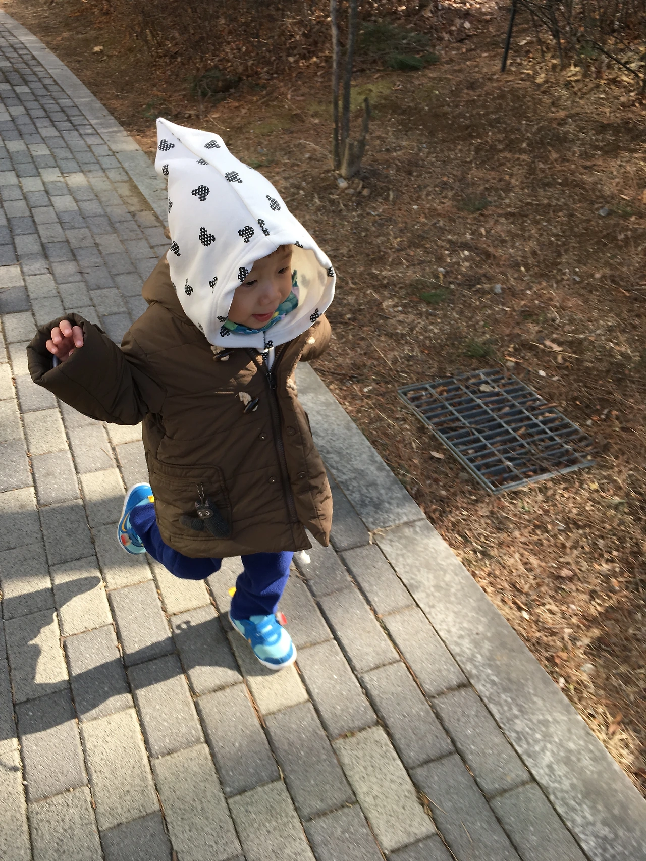 그리고 다음날 느지막이 일어나서는... 파랑이 좋아하고 (빵이 맛있어서) 준영이도 좋아하는 (수족관에 상어 가족이 살고 있어서) 공원 근처 베이커리 카페로 향했다. 가는 길에, 길에 보이는 태극기를 보며 파랑이 삼일절에 대해서 열심히 준영이에게 설명을 하였다. 아마 거의 못 알아 들었을 것 같다. (하지만 그녀는 늘 열심이다)
