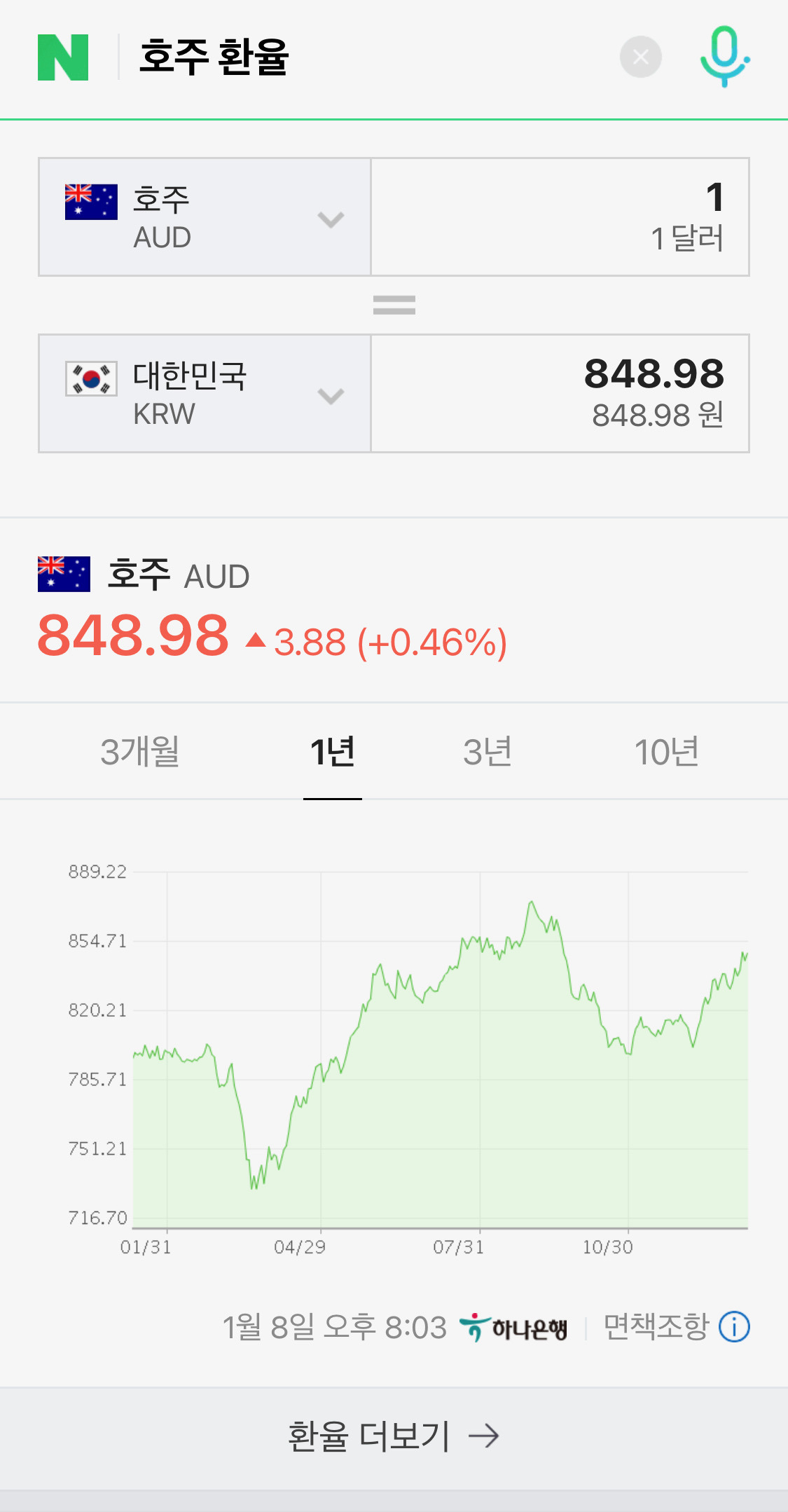 그리고 오늘 날짜 호주 환율을 확인해보니...