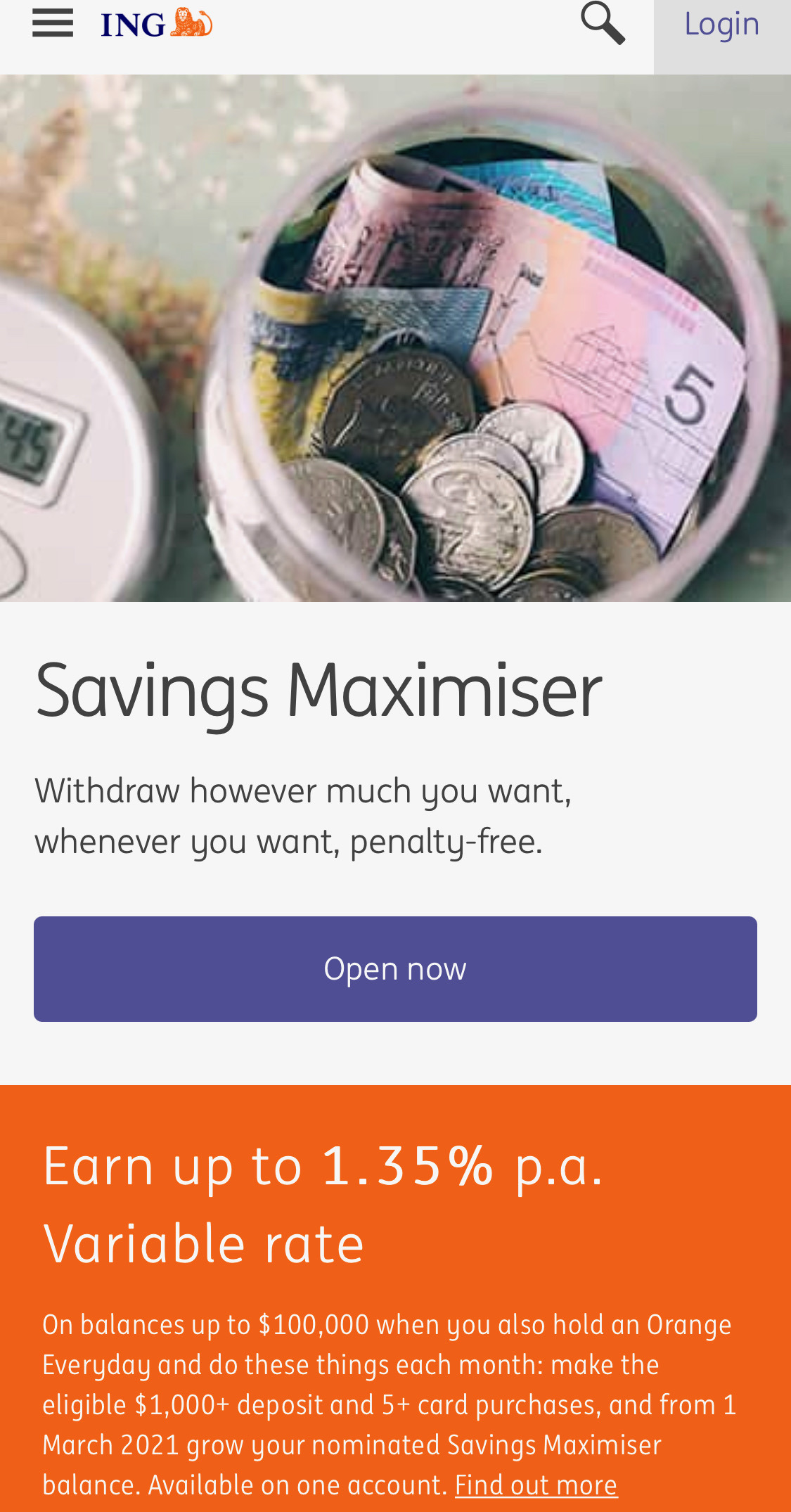 수시 입출금이 가능하지만 꽤 이율이 높아서 잠시 맡겨두기 좋은 통장을 가진 인터넷 은행을 찾았다. 'ING'라는 보험회사로 알고 있는 곳에서 현재 1.35%의 이율을 100,000불까지 특정 조건을 만족시키면 제공하고 있다. (이율은 계속 변한다.)