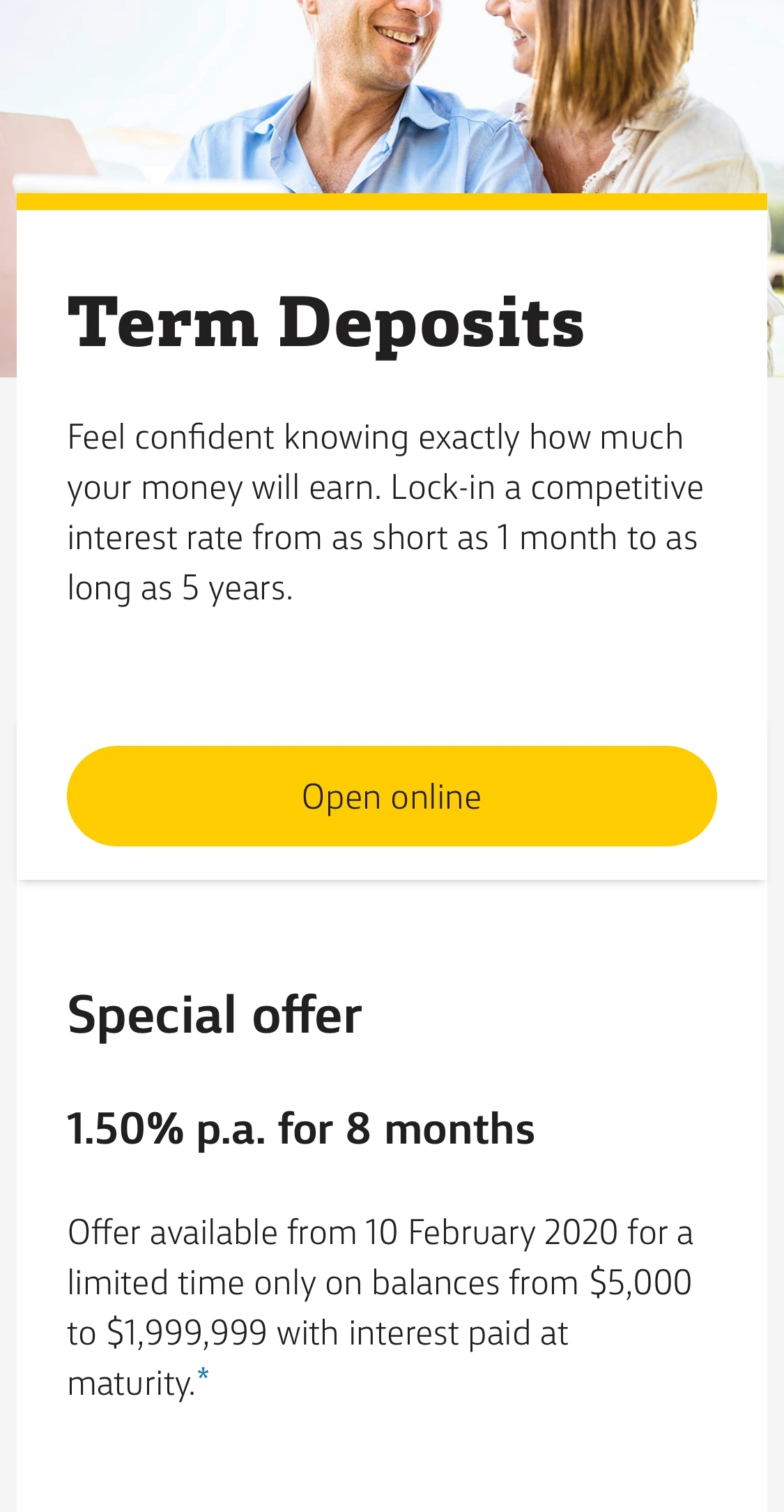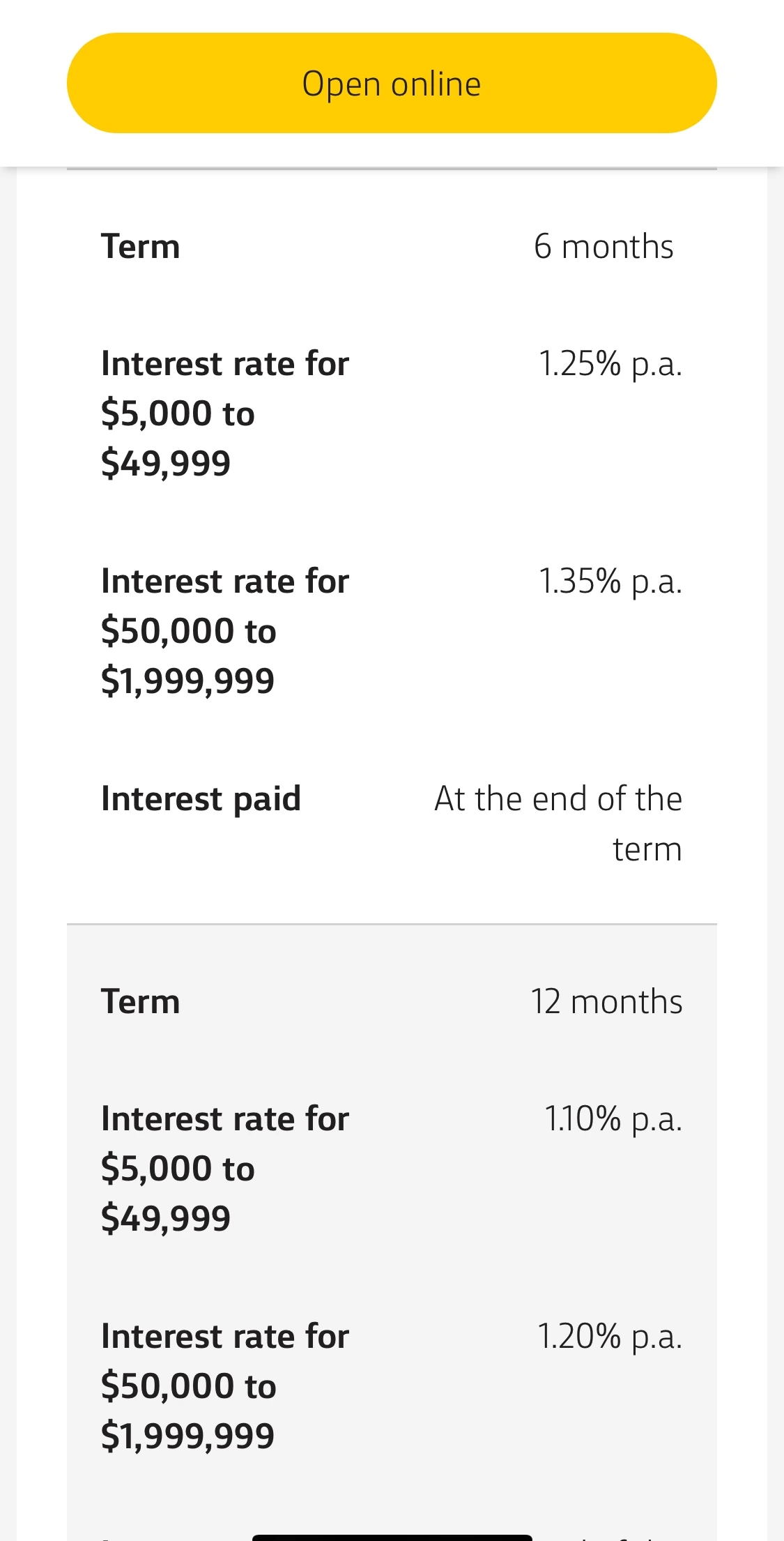 여기서는 'Term Deposits’이라고 부르는 모양이다. 전 세계 저금리 시대여서, 이 곳 호주도 이자율이 높지는 않았지만... (12개월보다 6개월이 더 높은 이상한 상황)