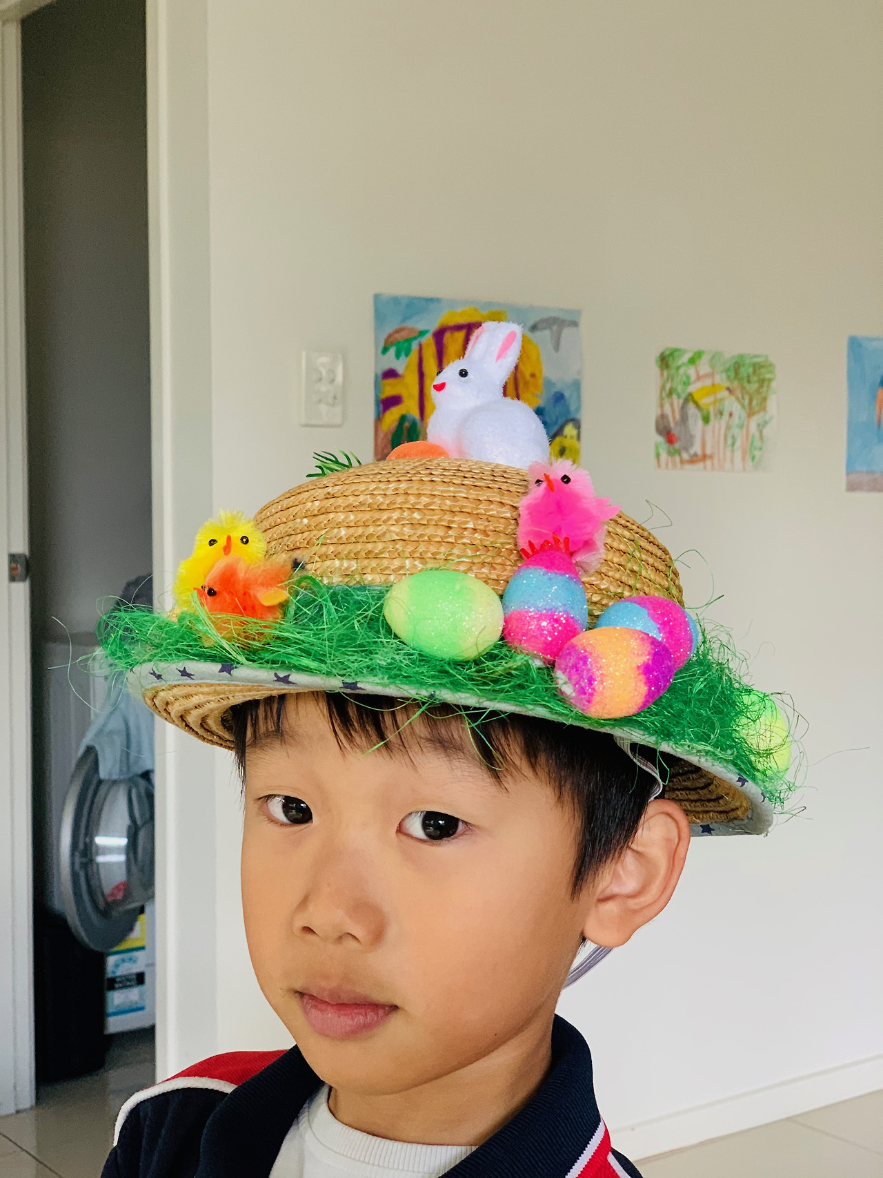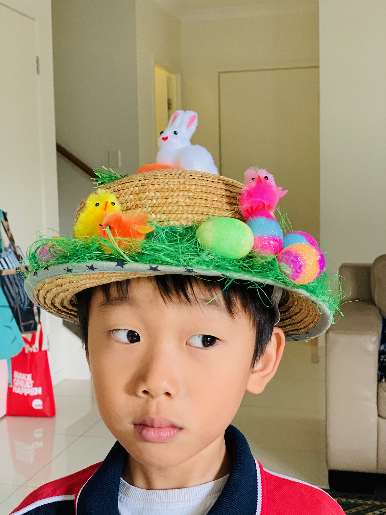 부활절을 맞이하여 마음껏 장식한 모자를 쓰고 가는 날이 있었다. 파랑이 센스를 발휘했다. 예정되어 있던 퍼레이드는 취소되었지만 아이들끼리는 그대로 즐길 수 있었다. 아들은 아주 마음에 들어하며 기쁘게 뽐내며 교실로 들어갔다.