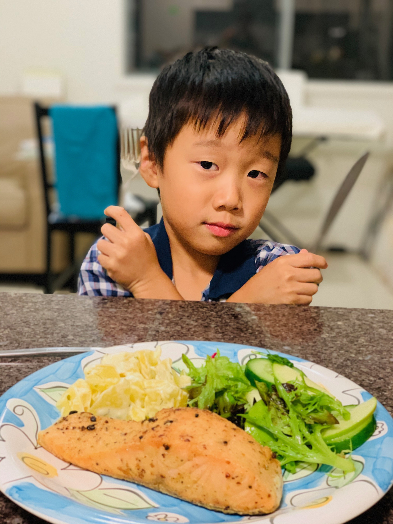 요리를 좋아하는 파랑의 몸과 마음의 여유가 사라져서 외부의 도움을 받았다. 호주 가정식 재료와 레시피를 배달해주는 서비스를 구독했다. 이가 없으면 잇몸으로 사는 법이기에 파랑의 부재를 내가 메꿨다. 오랜만에 요리를 했고 결과는 나쁘지 않았다. 하지만 사용된 시간이 너무 길어서 '못 해 먹겠다'는 기분이 남았다. (먹는 시간이 제일 아까운 사람) 그래도 이젠 나만 혼자 살던 시절이 아니기에 아들을 보며 마음을 잡아본다.
