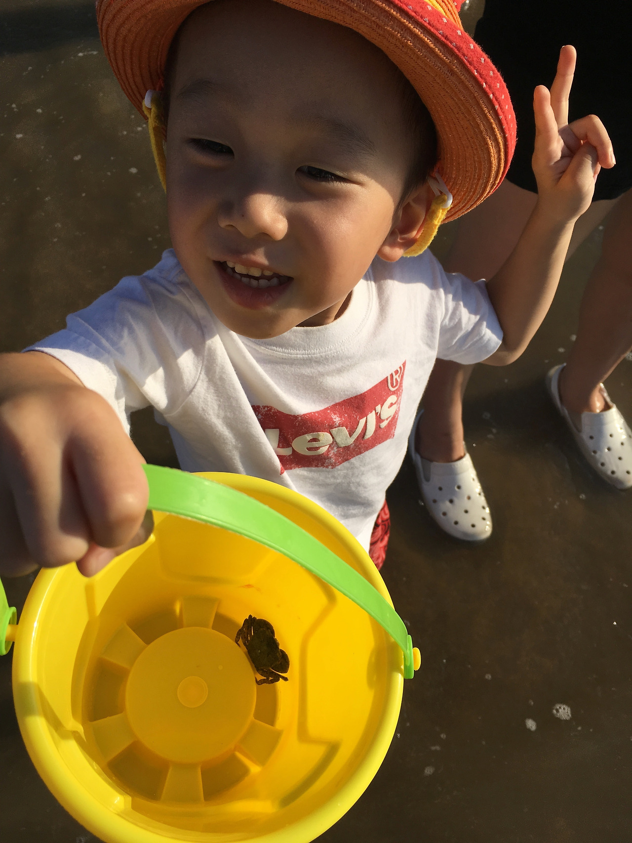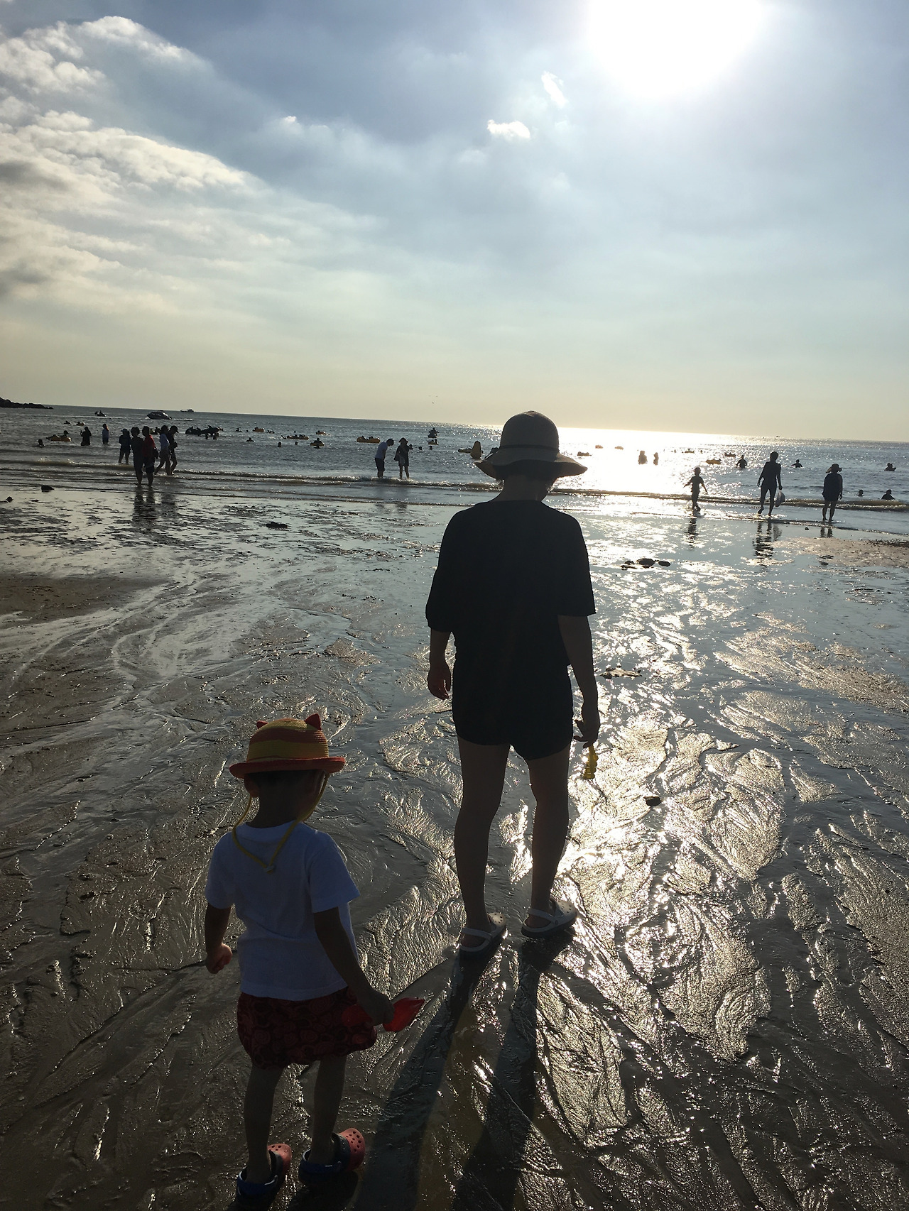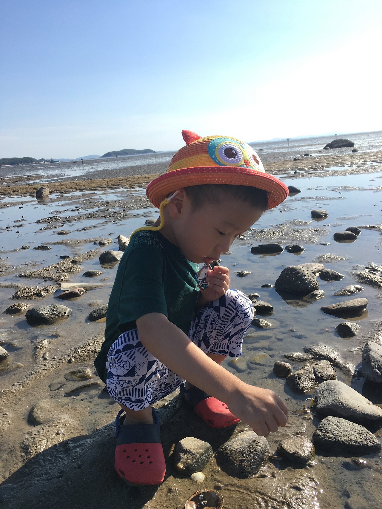 정글 친구들을 뒤로하고 호텔에 도착해서 짐을 풀고 아들이 기대하고 있던 '갯벌'로 출발했다. 근처에 을왕리 해수욕장이 위치하고 있어서 쉽게 이동했다. 게, 소라게도 많이 보고 파랑이 갯벌에 있는 물고기도 우연찮게 잡는 바람에 아주 신나 했다. (재주도 좋지)