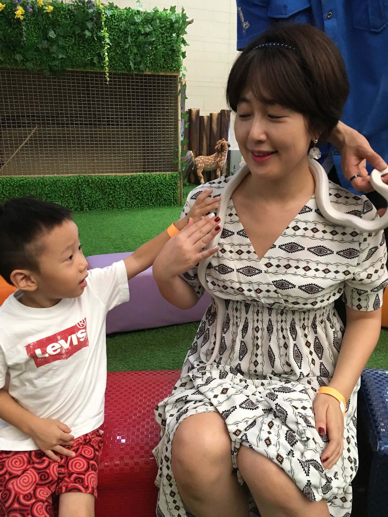 파랑의 사전 준비 덕분에 김포공항에서 열리고 있는 '정글대탐험'에 가서 각종 뱀과 도마뱀을 먼저 체험했다. 꼬마 돼지도 만나고, 작고 큰 앵무새도 만났다. 떠나기 전에 자신 있게 뱀을 만질 거라던 아들은 실제로는 매우 겁먹은 채 겨우 만져보았다. 하하.
