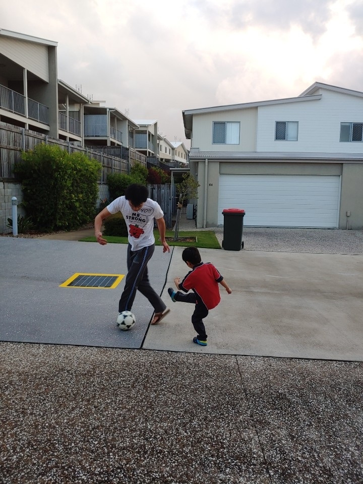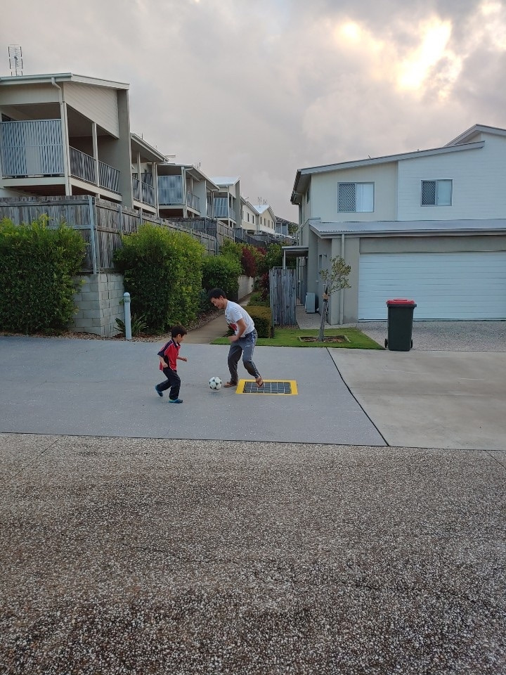 가끔 ‘가라지 사커’라고 이름 붙인 운동을 아들과 즐긴다.