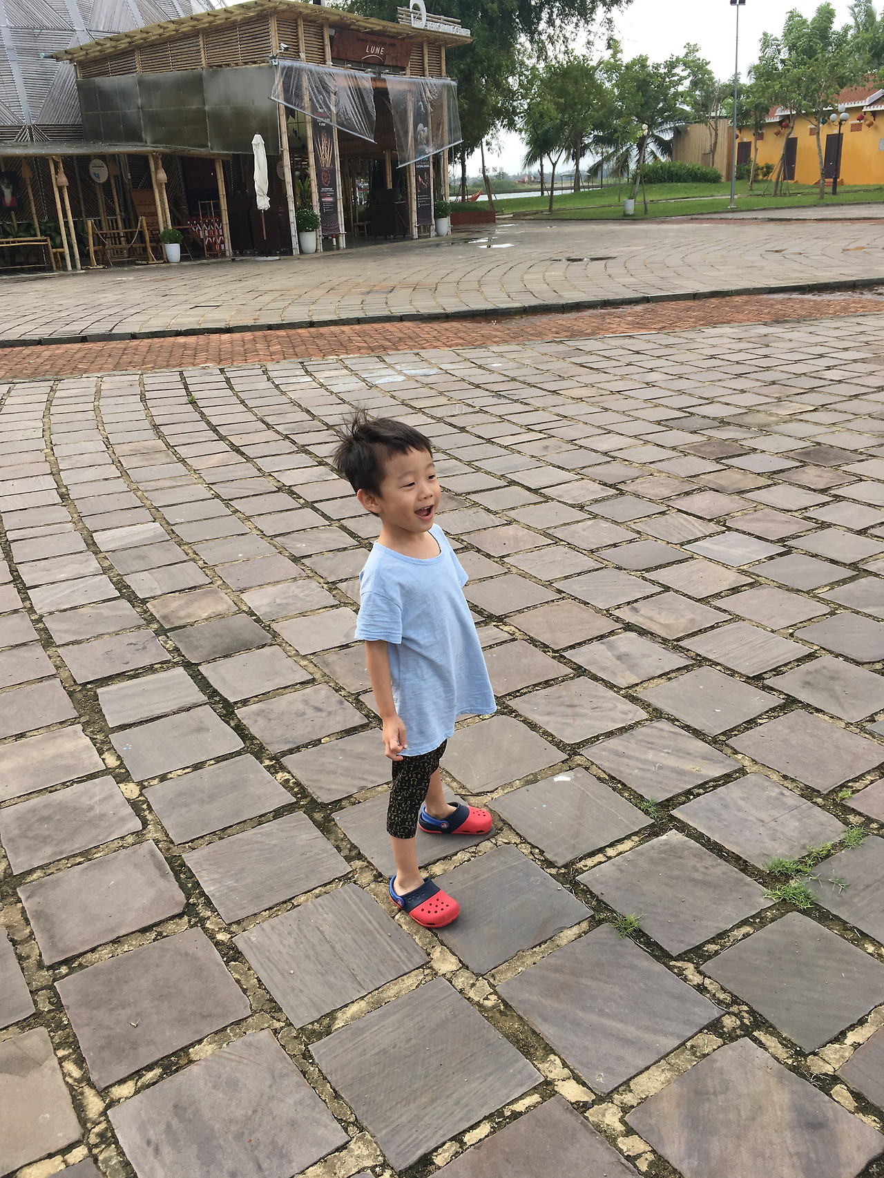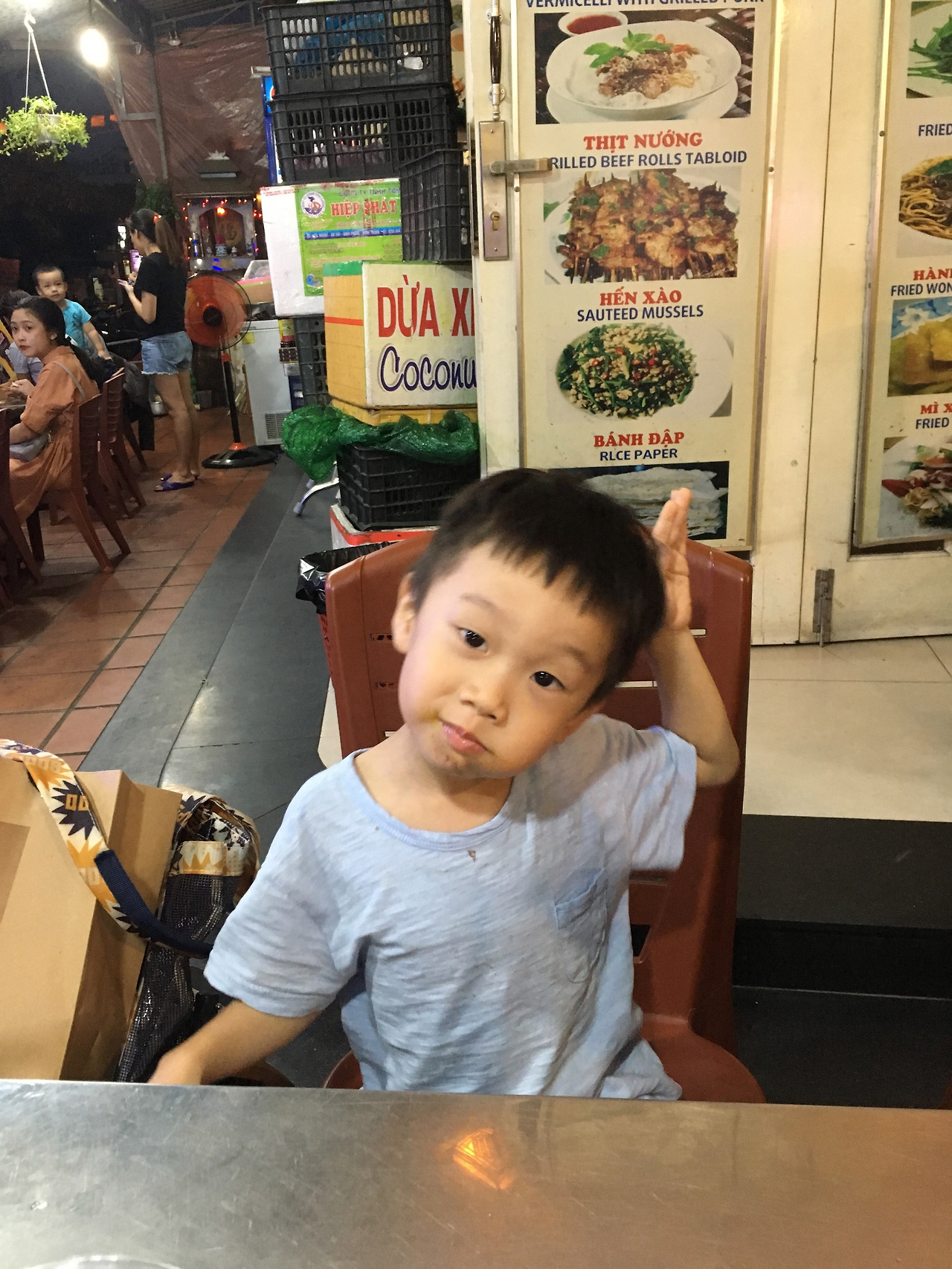 셋째 날 호텔에서 자전거를 대여해준다고 해서 호기롭게 2대를 빌렸다. 아이용 자전거는 따로 없어서 그만둘까 하다가... 내 뒤에 아들을 앉히고 안전띠로 고정한 뒤에 몇 번 테스트를 해보니 탈만하다고 생각했다. 그러고 호이안 올드타운을 자전거로 30분 넘게 즐겁게 누비고 다녔다. 아들도 처음 타는 자전거에 매우 들떠있었다. 목적지였던 카페에 거의 도착해서 잠시 멈춘 뒤, 위치를 확인하고 다시 출발하려는데...