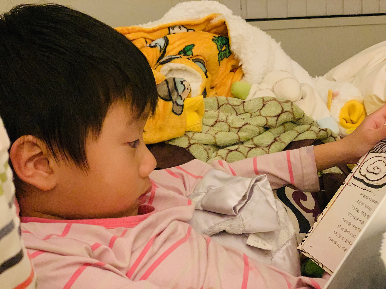 한글 책을 읽다 보면 새로운 표현이 나온다. '엄마~ 누구한테 약한 게 뭐야?' 파랑이 아들에게 잘 설명해주니 아들 얼굴이 환해진다. '아! 그 이야기구나. 아빠가 나한테 약하잖아!' 짜식, 내 약점을 잘 알고 있네.