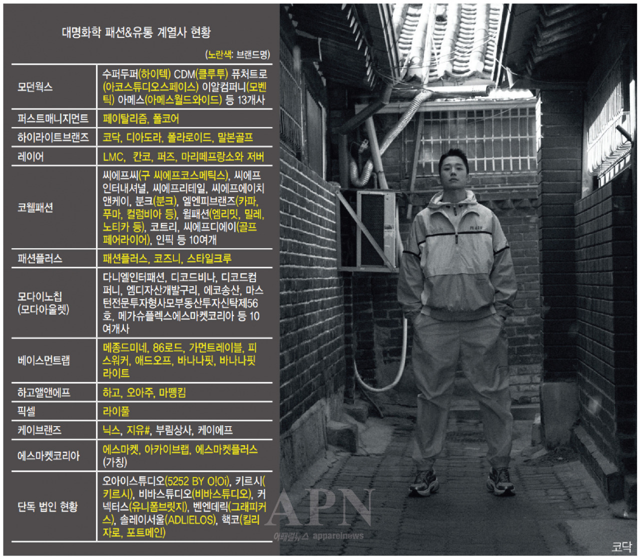 대표적으로 LMC, 오아이스튜디오, 비바스튜디오, 키르시, 코닥 등 스트릿브랜드부터 모다아울렛 등 유통산업, 로젠택배 등 물류 산업까지 전반적인 생태계 Value Chain이 구축되어있다.