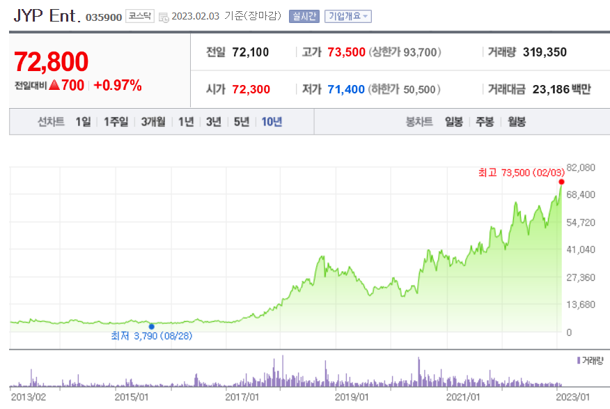 참고로 당시 JYP의 시가총액은 1,500억 원 정도였다.