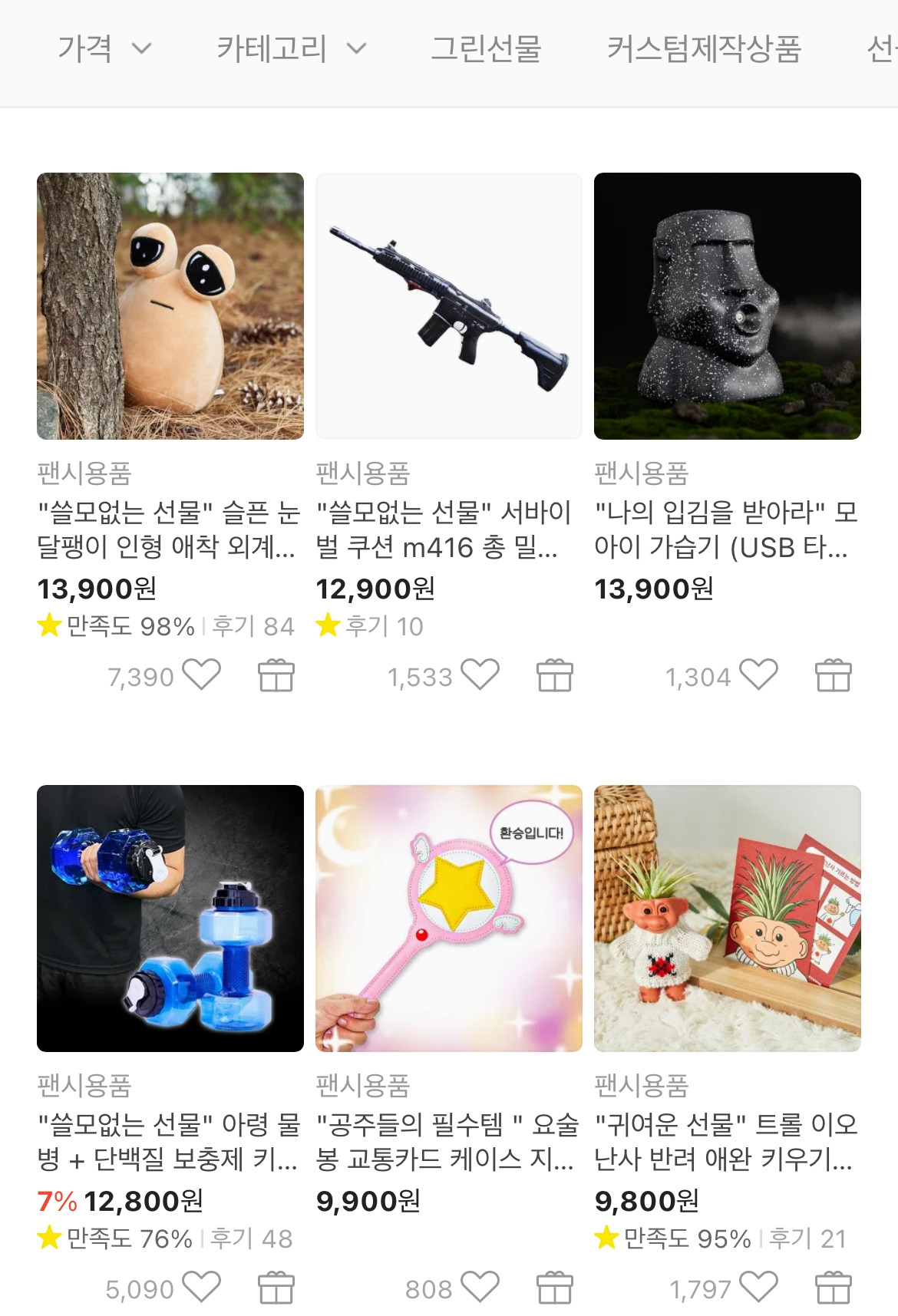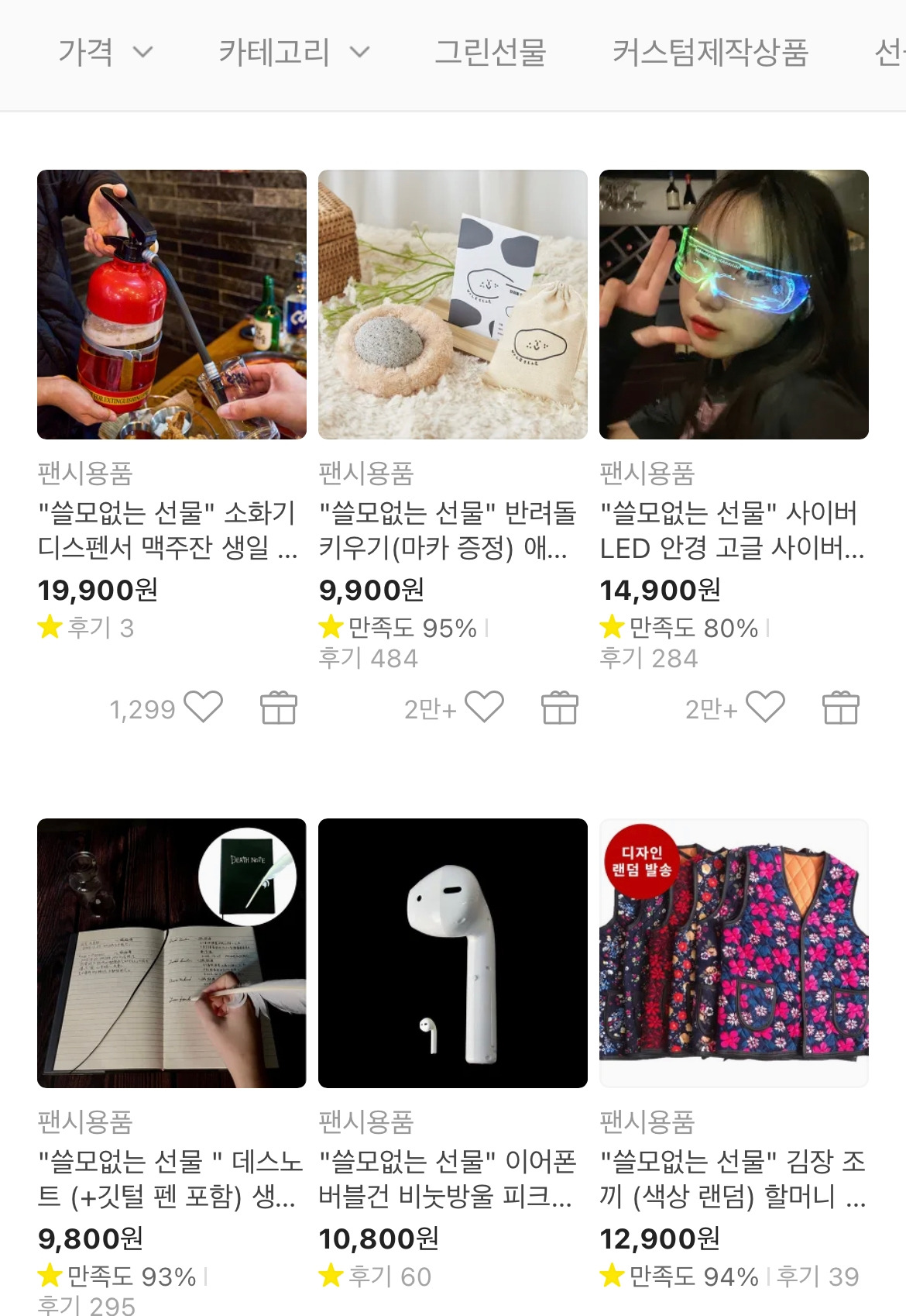 이어지는 내용이다. 카카오 선물하기에서 순위권에 올라오는 상품들을 보면 콘텐츠가 강한 상품이 눈에 띈다. ‘쓸데없는 선물’이라는 카테고리가 있을 만큼 실용성보다 선물했을 때 재미를 추구하는 상품이 많다.