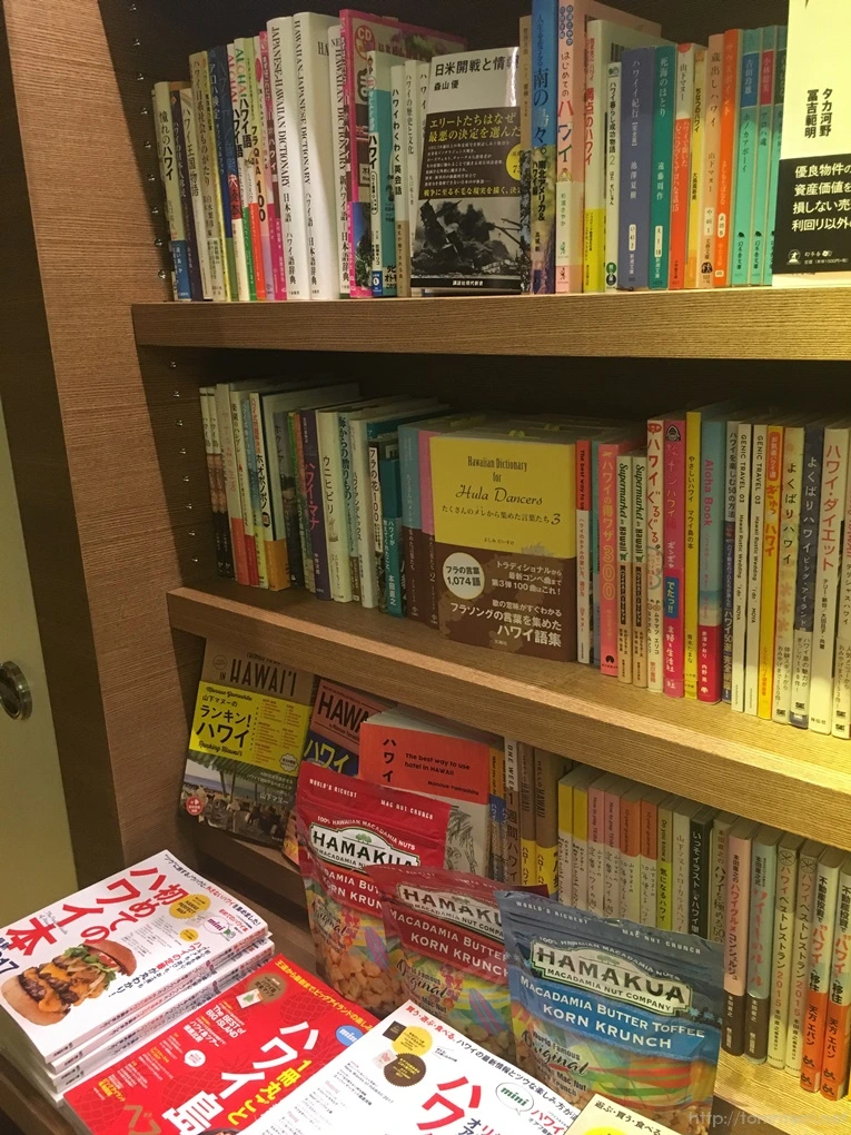 그리고 '하와이말 배우기', '훌라댄스 추는 법', '하와이 식문화의 이해' 등 지역에 관한 여러 교양 도서들도 배치되어 있습니다.