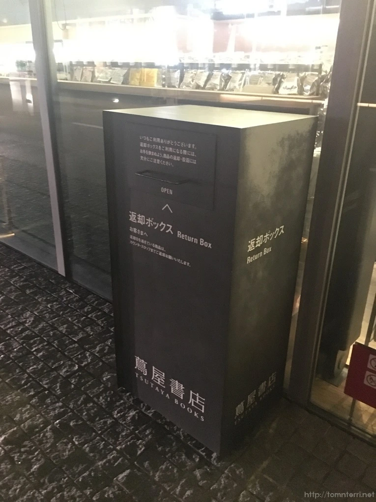 츠타야 한정 굿즈를 판매하고 있고, 츠타야답게 반납 박스도 밖에 설치되어 있습니다.