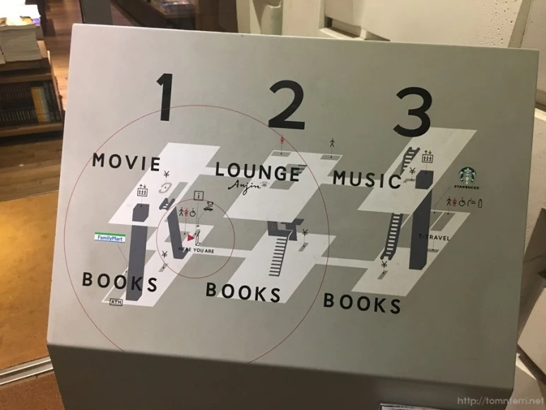 T-Site는 총 3개의 건물로 되어 있고, 지도는 왼쪽 위 화면과 같습니다. 1동 2층과 3동 2층은 원래 츠타야 영화/음악 대여점이라고 보시면 될 듯..